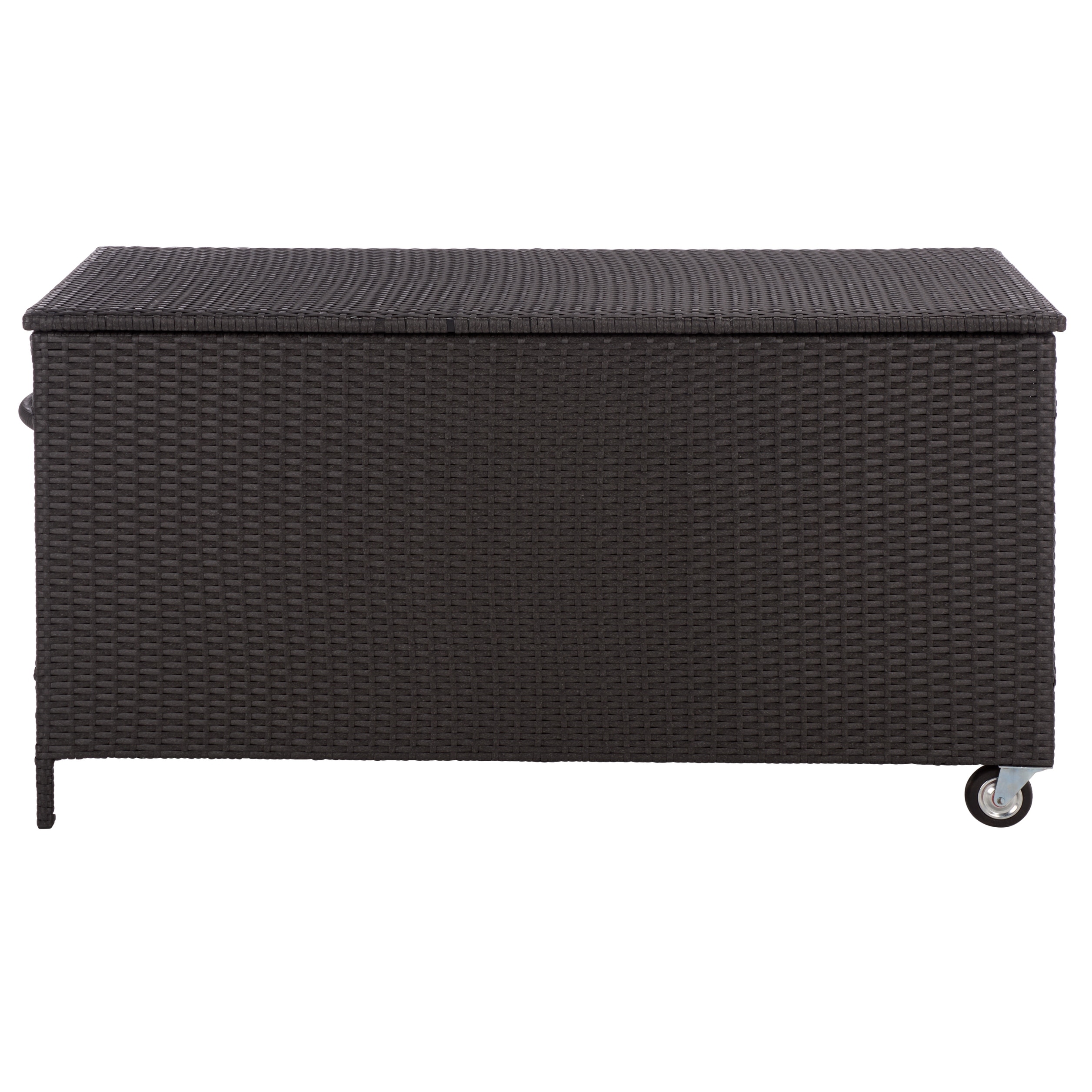 133 Gallon Deck Storage Box, Patio Rattan Storage Container with 2 Universal Wheels, Safety Pneumatic Rod, Sturdy Steel Frame