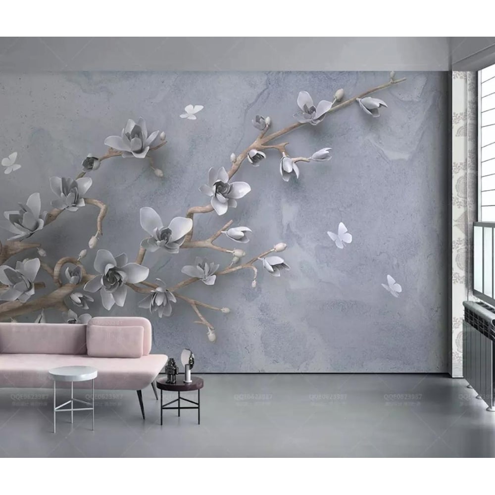 GK Wall Design 3D Floral Magnolia Blossom Gray Flower Scandinavian Wallpaper