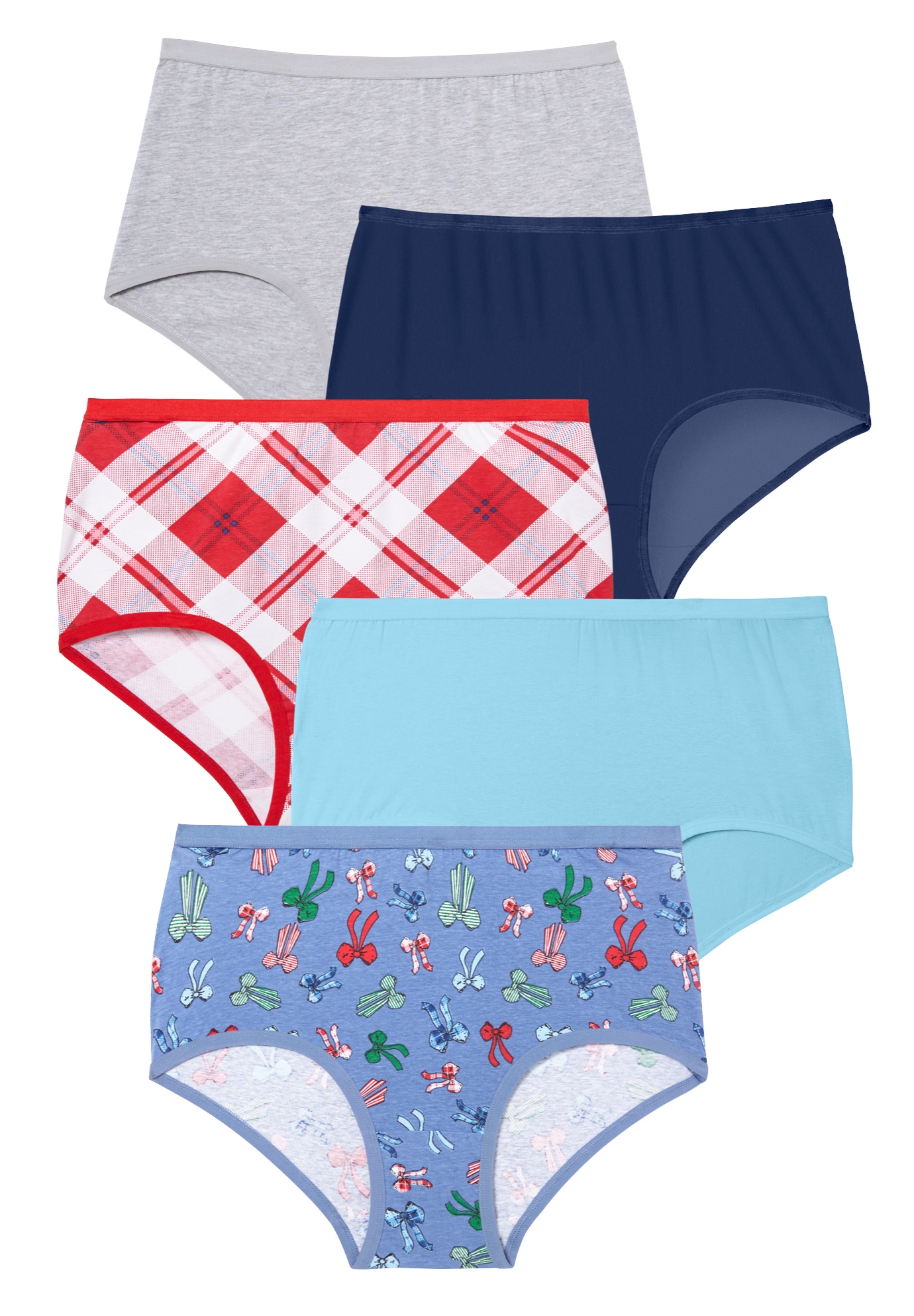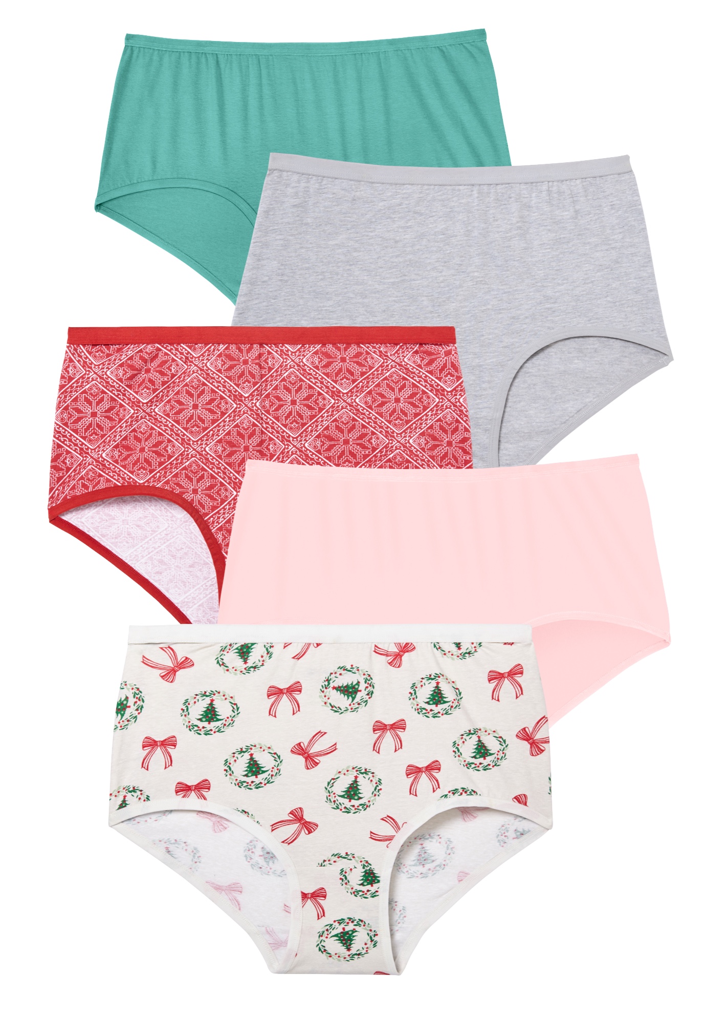 Plus Size Women's Full Coverage Stretch Cotton Brief 5-Pack by Comfort Choice in Holiday Wreath Pack (Size 9) Underwear