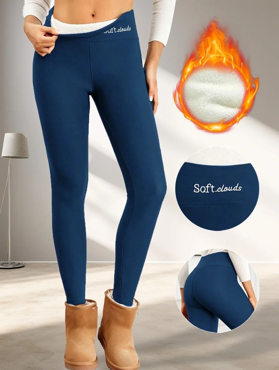 Blue Thick Winter Leggings Women High Waist Warm Velvet Pants l black