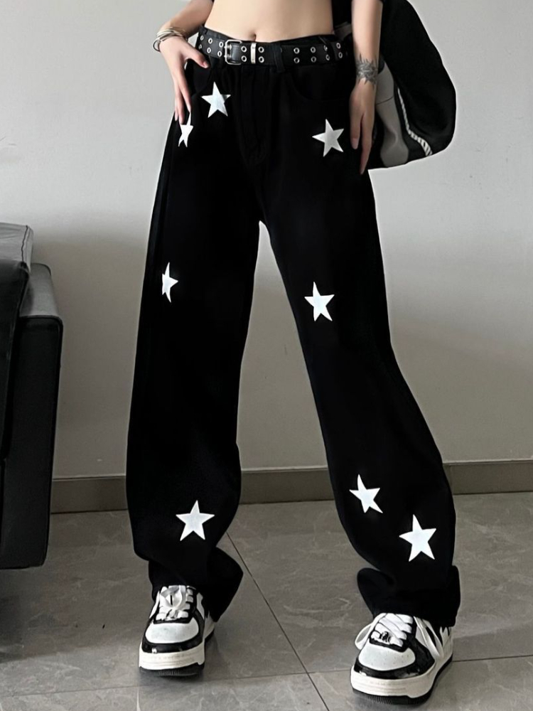 Women's Y2K Wide Leg Jeans, High Waisted Baggy Vintage Chic, Harajuku Streetwear, Unisex Casual All Match Denim white No Belt xxxl