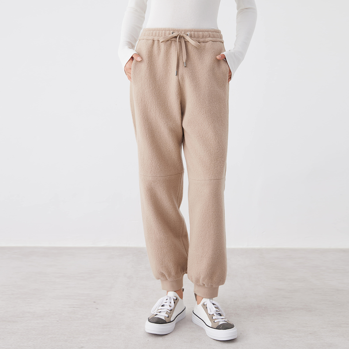 Luxury Brand High Quality Women Clothing Casual Trousers Thick 100 Wool Pants Autumn Winter Elegant Everyday Wear camel m