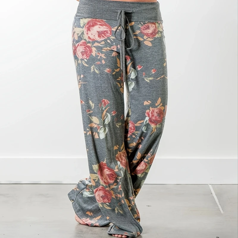 Women's Printed Wide Leg Pants, Loose And Comfortable Yoga Pants With Drawstring, Casual Comfort Wear blue 3xl