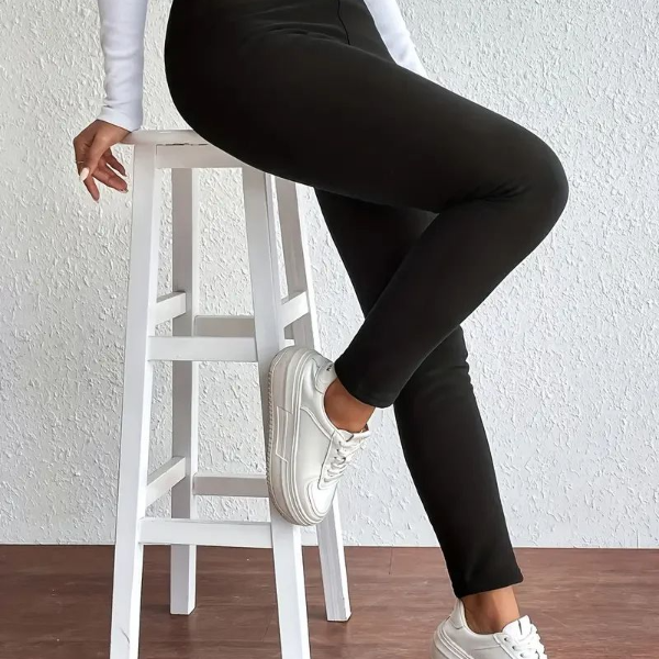 Womens High Waist Plus Velvet Stretch Winter Leggings l black