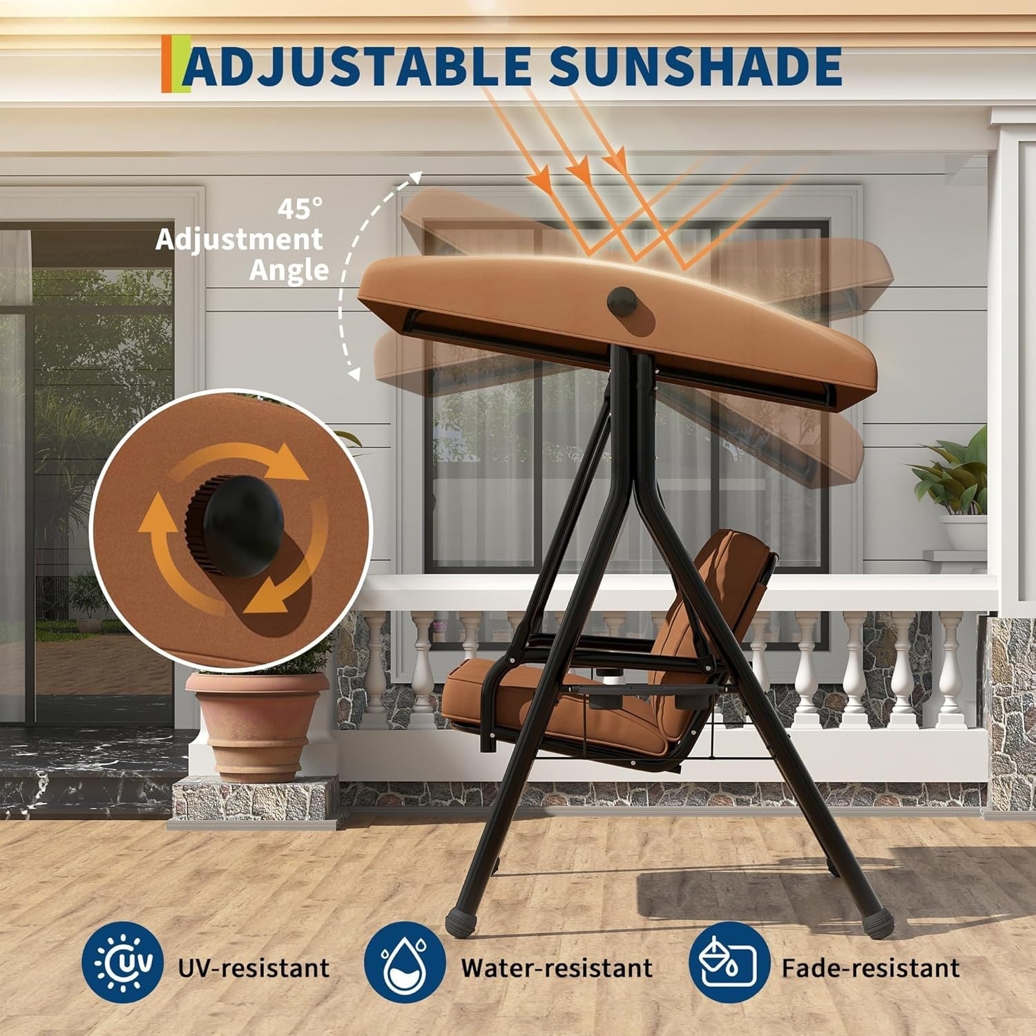 2-Seater Outdoor Swing Chair with Canopy, Cushioned Patio Bench with Metal Frame