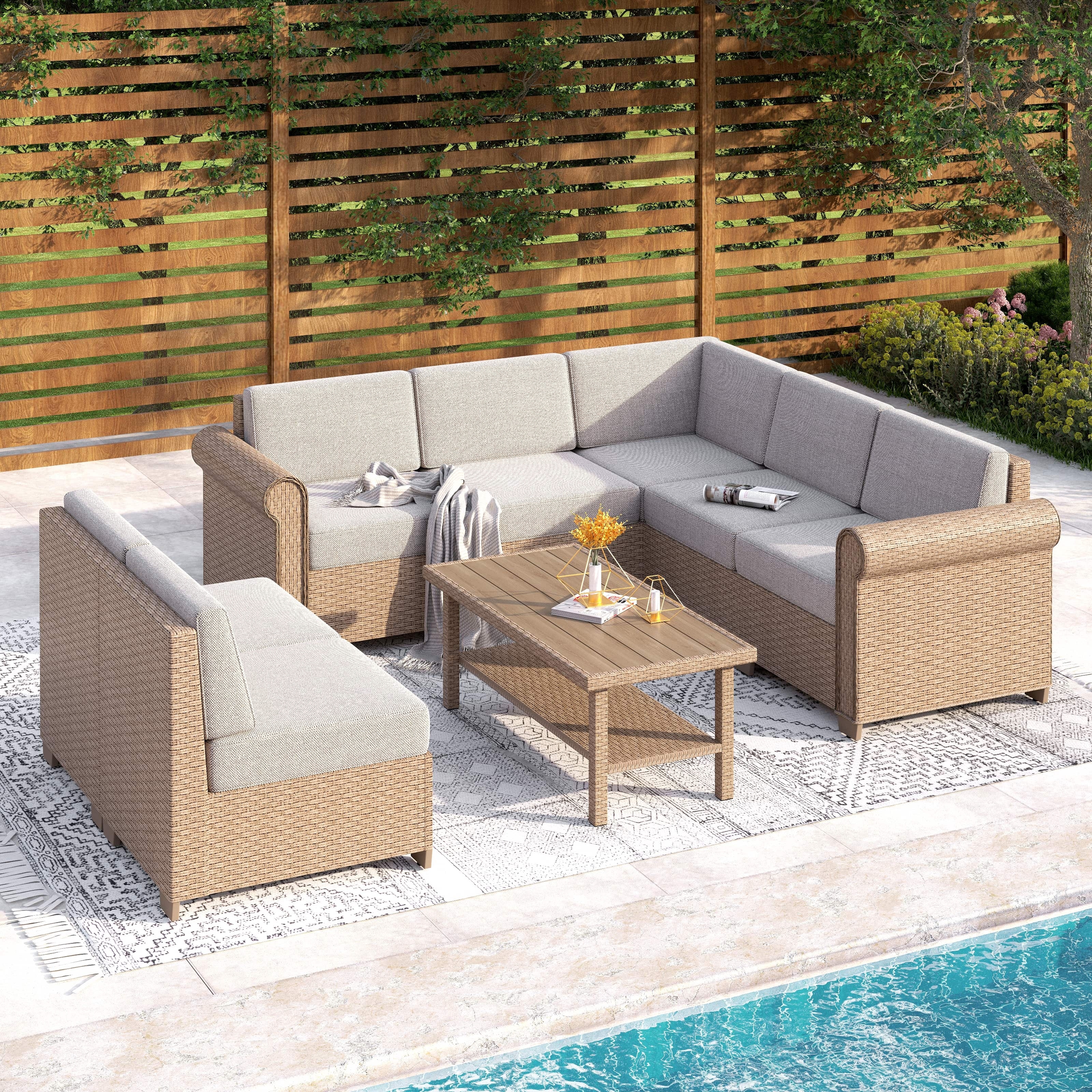 MAISON ARTS Large Outdoor Patio Sectional Sofa Wicker Furniture Conversation Set with Cushions