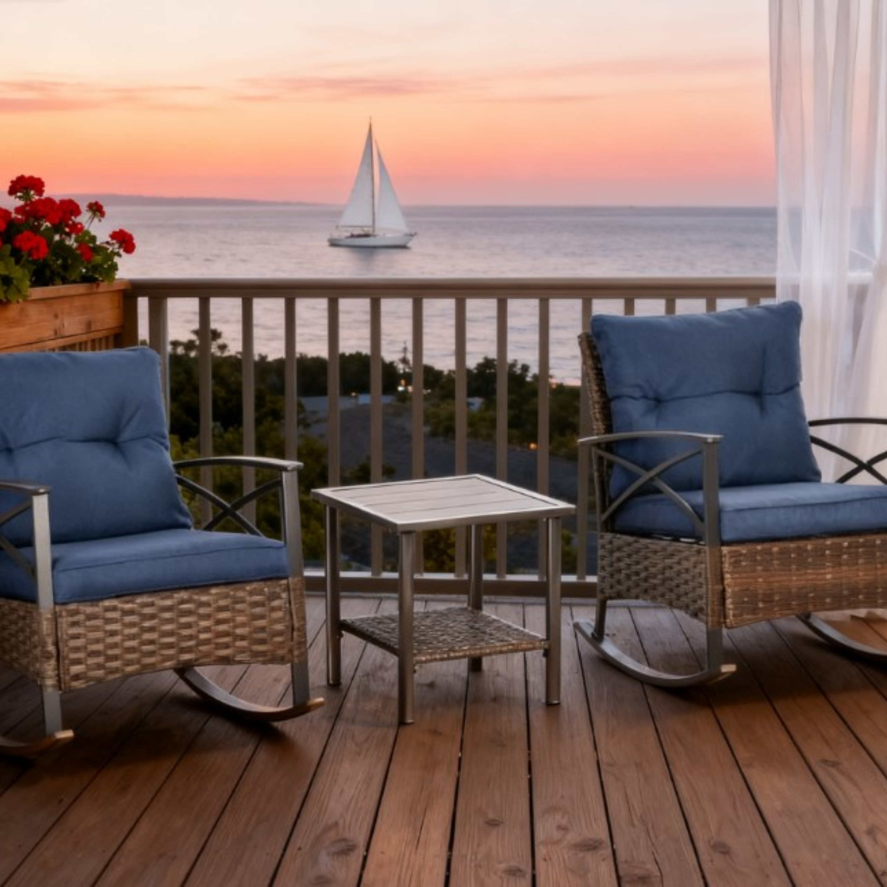 GDFStudio 2 Rocking Chairs & 2-Tier Coffee Table Outdoor Set