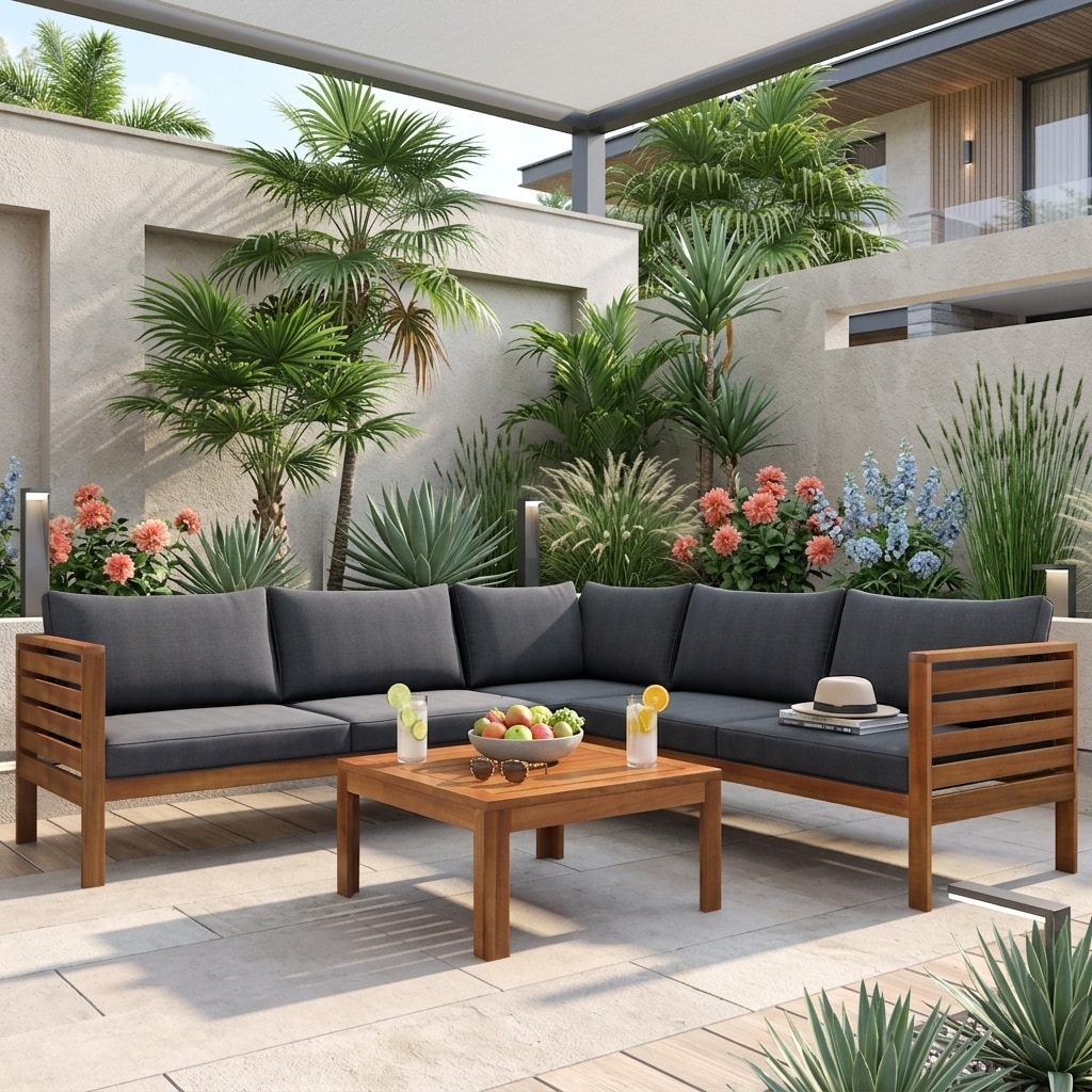 Acacia L-Shape Outdoor Conversation Set by Leisure Zone