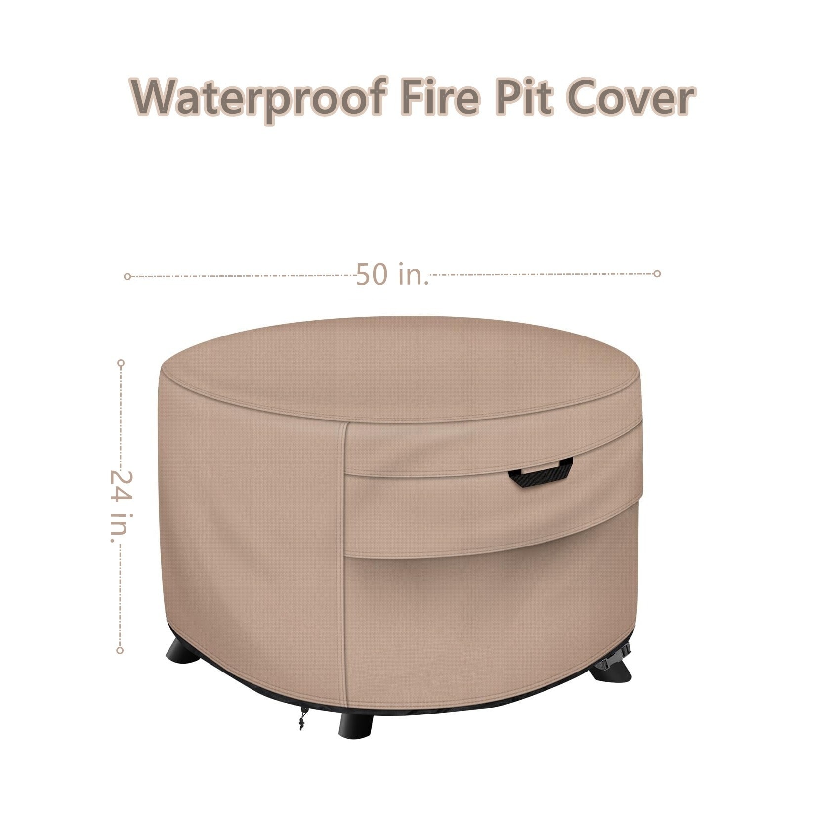 Waterproof Outdoor Round Fire Pit Table Cover with Air Vents and Secure Fasteners