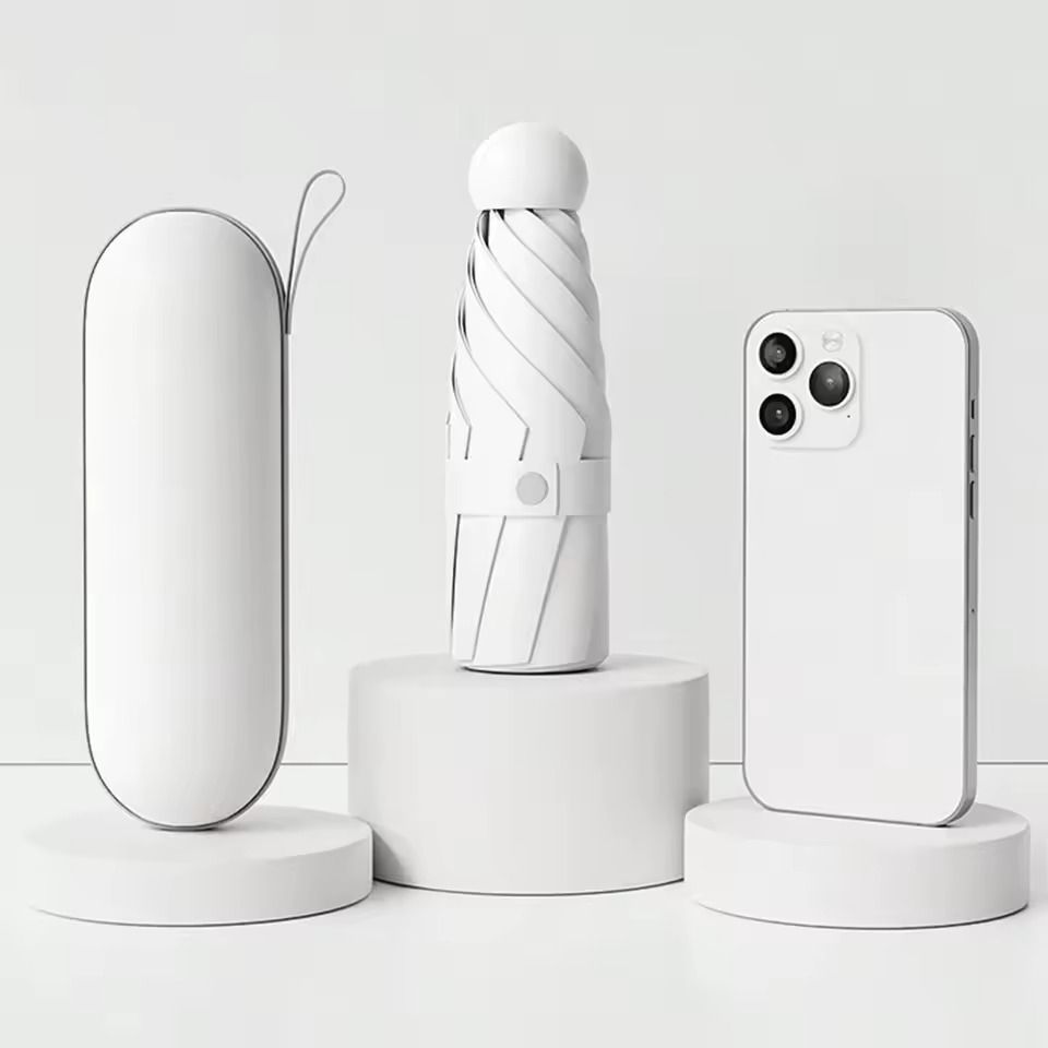 Portable Mini Umbrella With UV Coating And Reinforced Ribs For Sunny And Rainy Days white