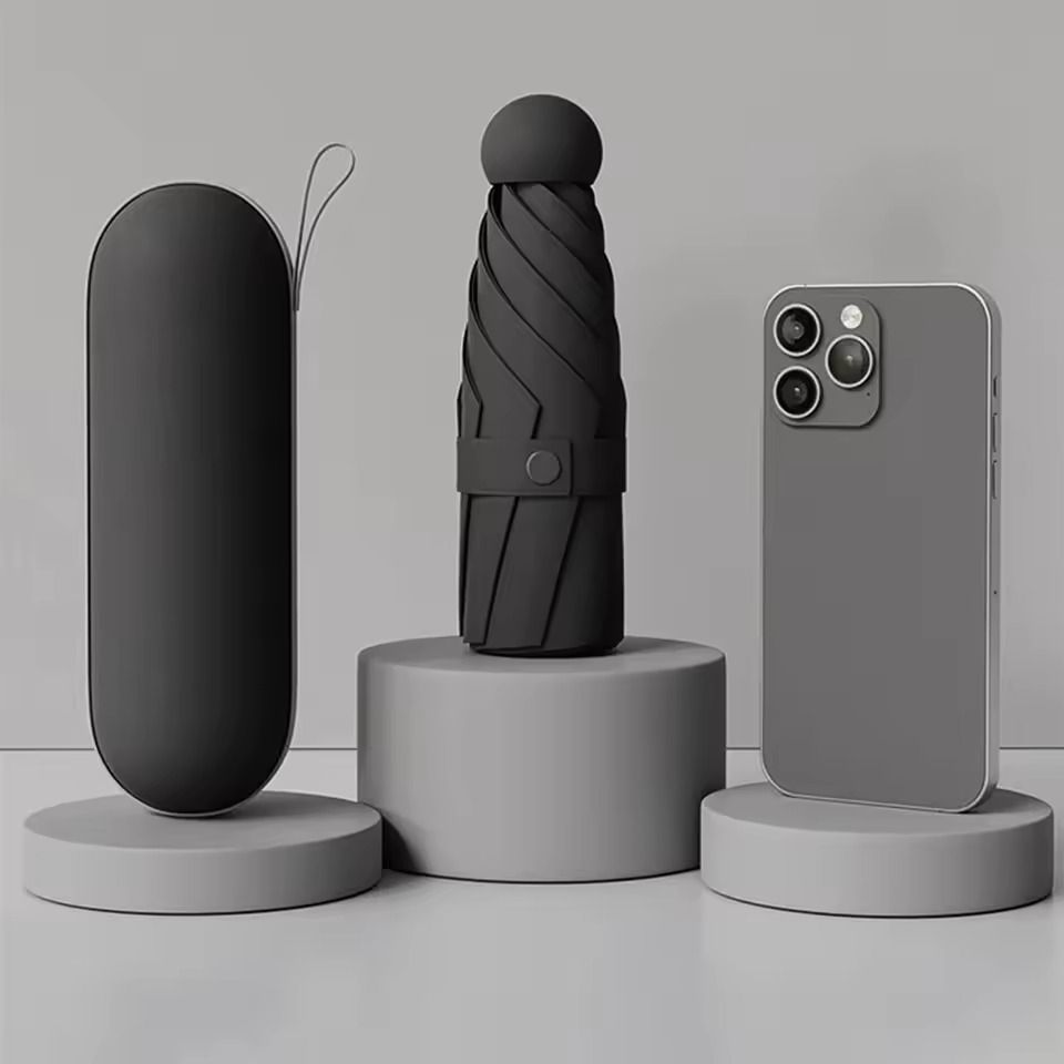 Portable Mini Umbrella With UV Coating And Reinforced Ribs For Sunny And Rainy Days black