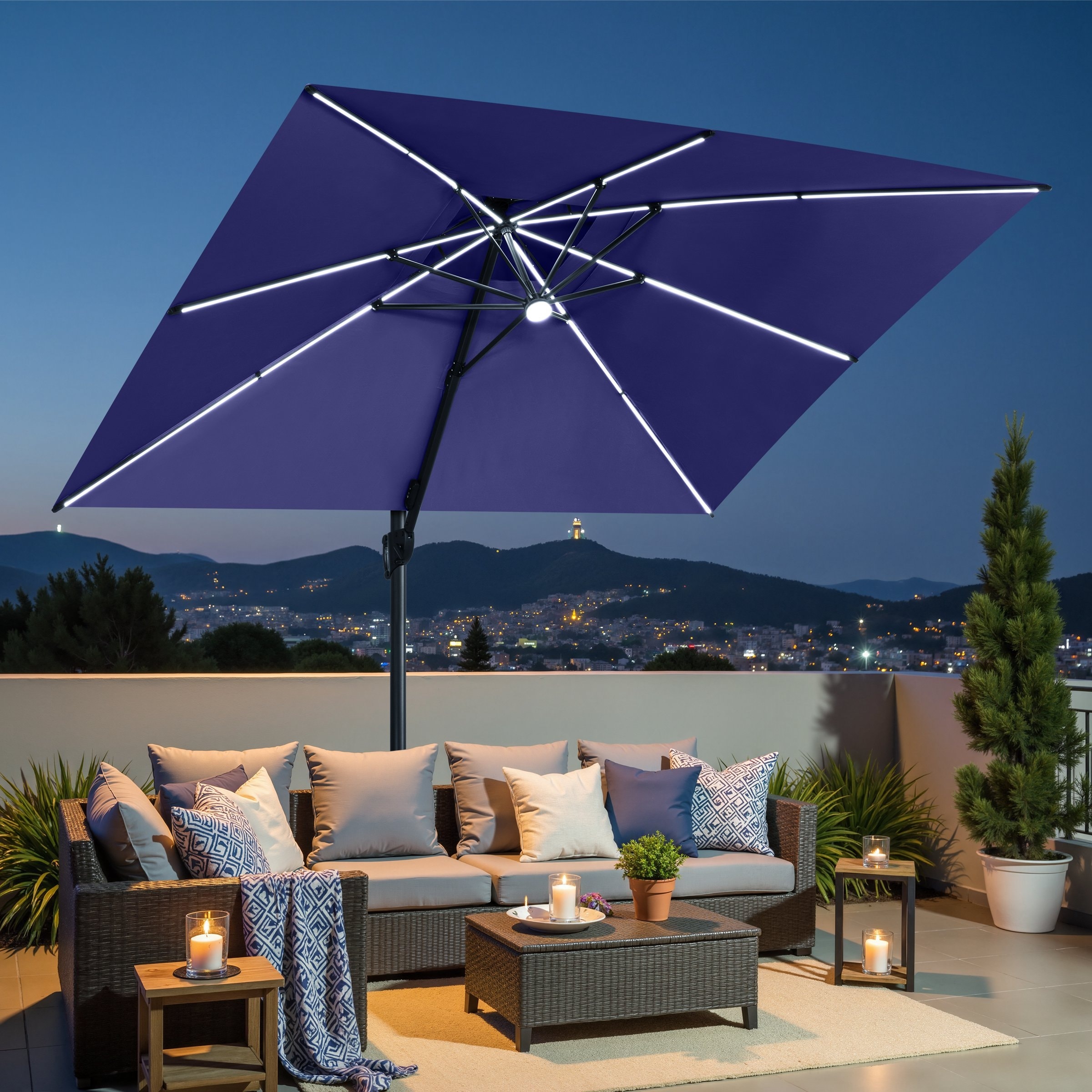 10' x 13' Solar LED Aluminum Cantilever Patio Umbrella with 360° Rotation USB & Type-C Charging, Double-Top Vented Canopy
