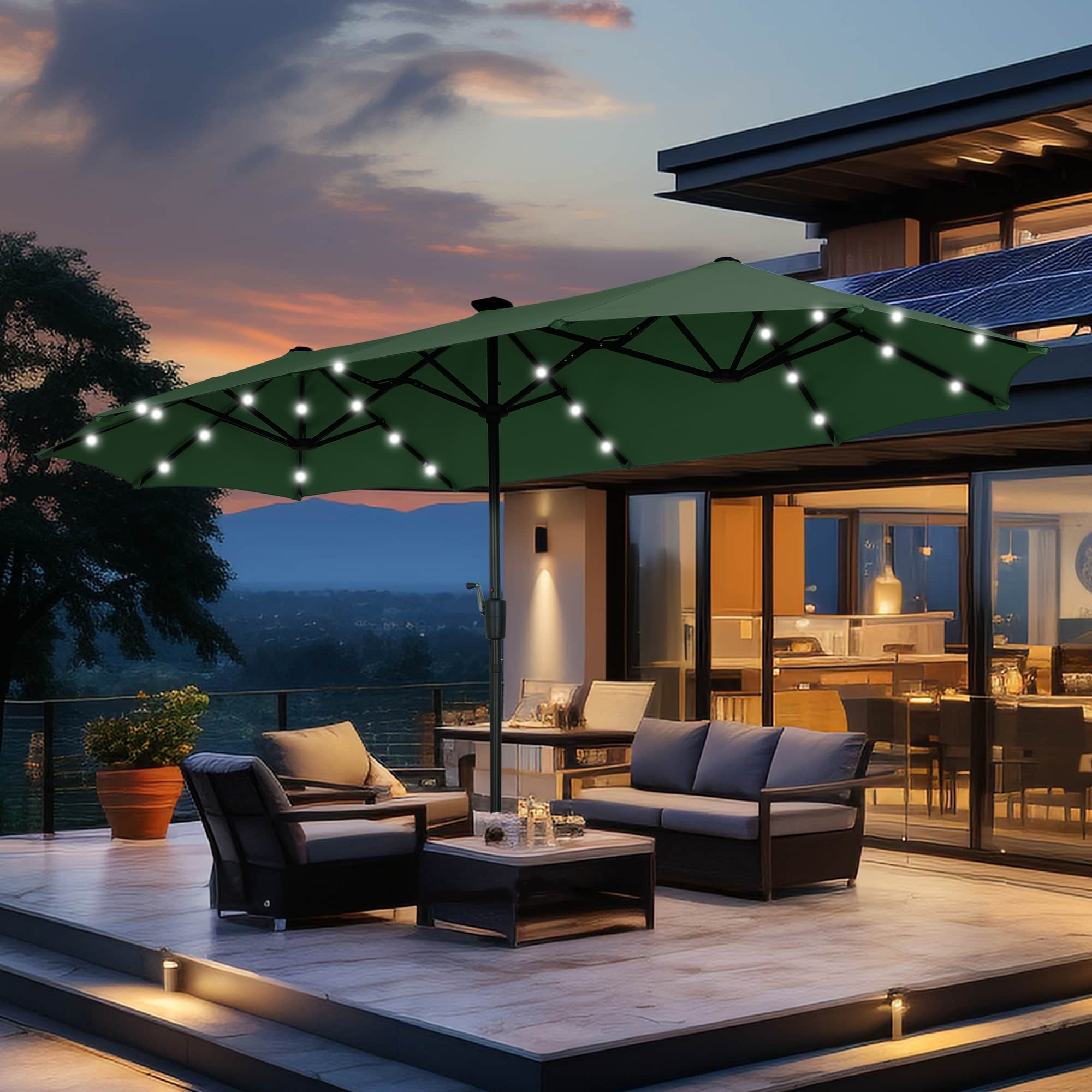 AECOJOY 15x9ft Large Double-Sided Patio Umbrella, Rectangle Market Table 177''x104'' Umbrellas with Crank Air Vents
