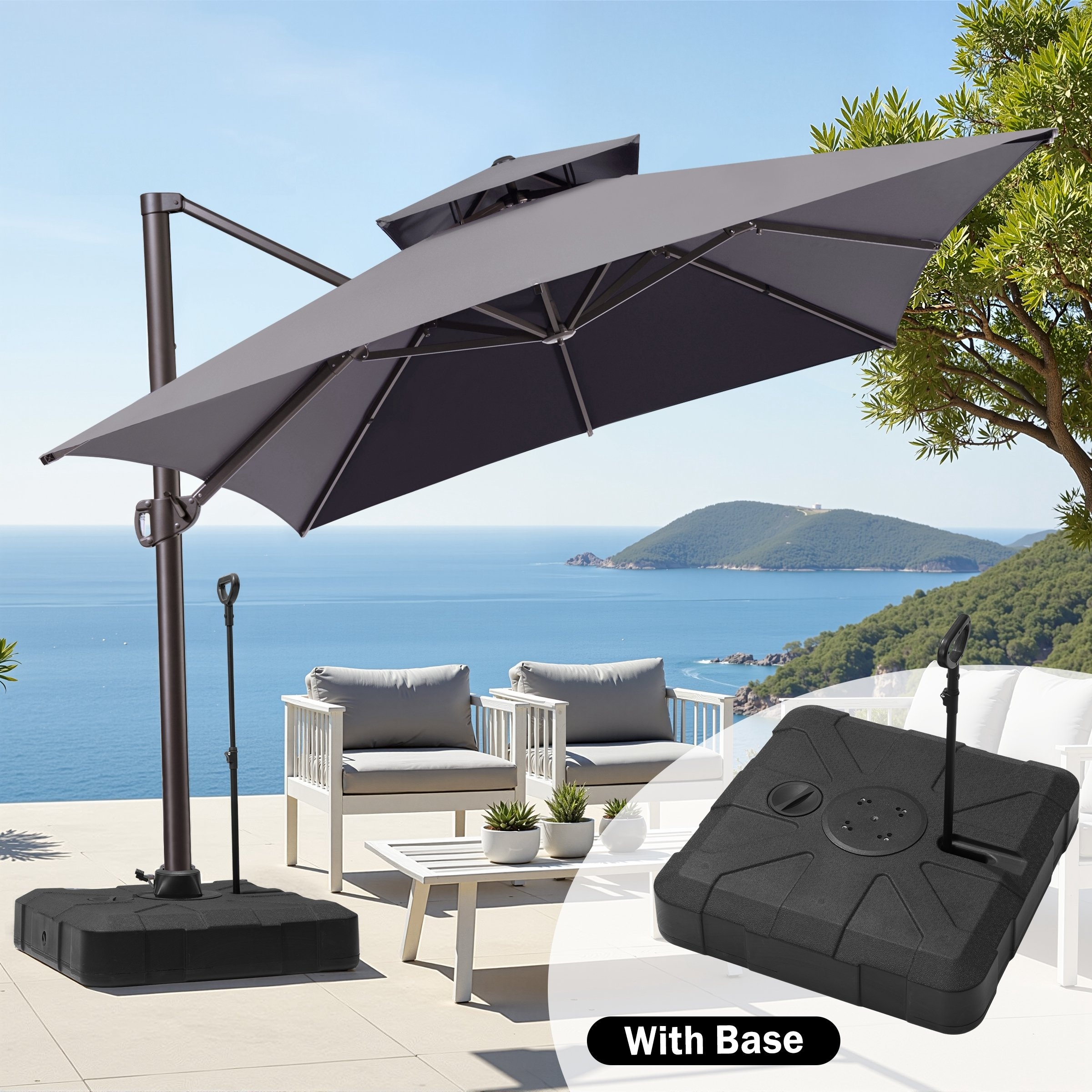 10 x 13 ft Outdoor Aluminum Double Top Patio Offset Cantilever Umbrella with Base