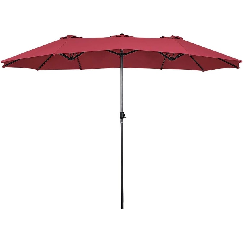 15 Ft Double-Sided Patio Umbrella with Crank, Steel Frame, Wind Vents, 180g Polyester Fabric