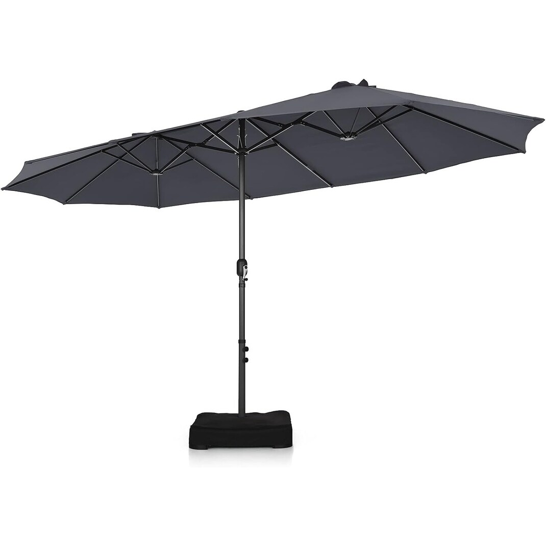 15FT Double-Sided Patio Umbrella with Hand-Crank System, Enhanced Base, and 12-Rib Structure for Outdoor Use