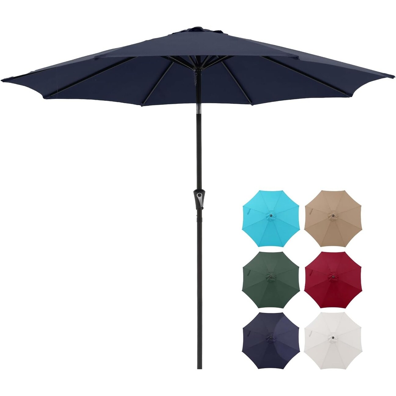 9' Outdoor Patio Umbrella with Crank and Tilt, Waterproof Polyester, 8 Sturdy Ribs