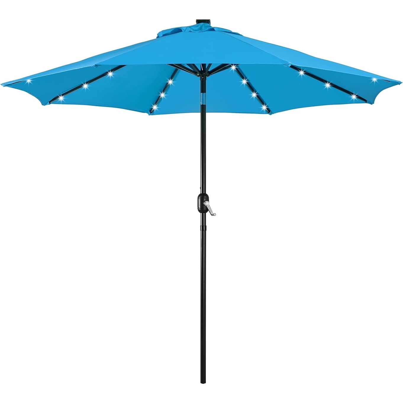 9FT Solar Patio Umbrella with 32 LED Lights, Crank Lift & Tilt for Garden, Pool - Sky Blue