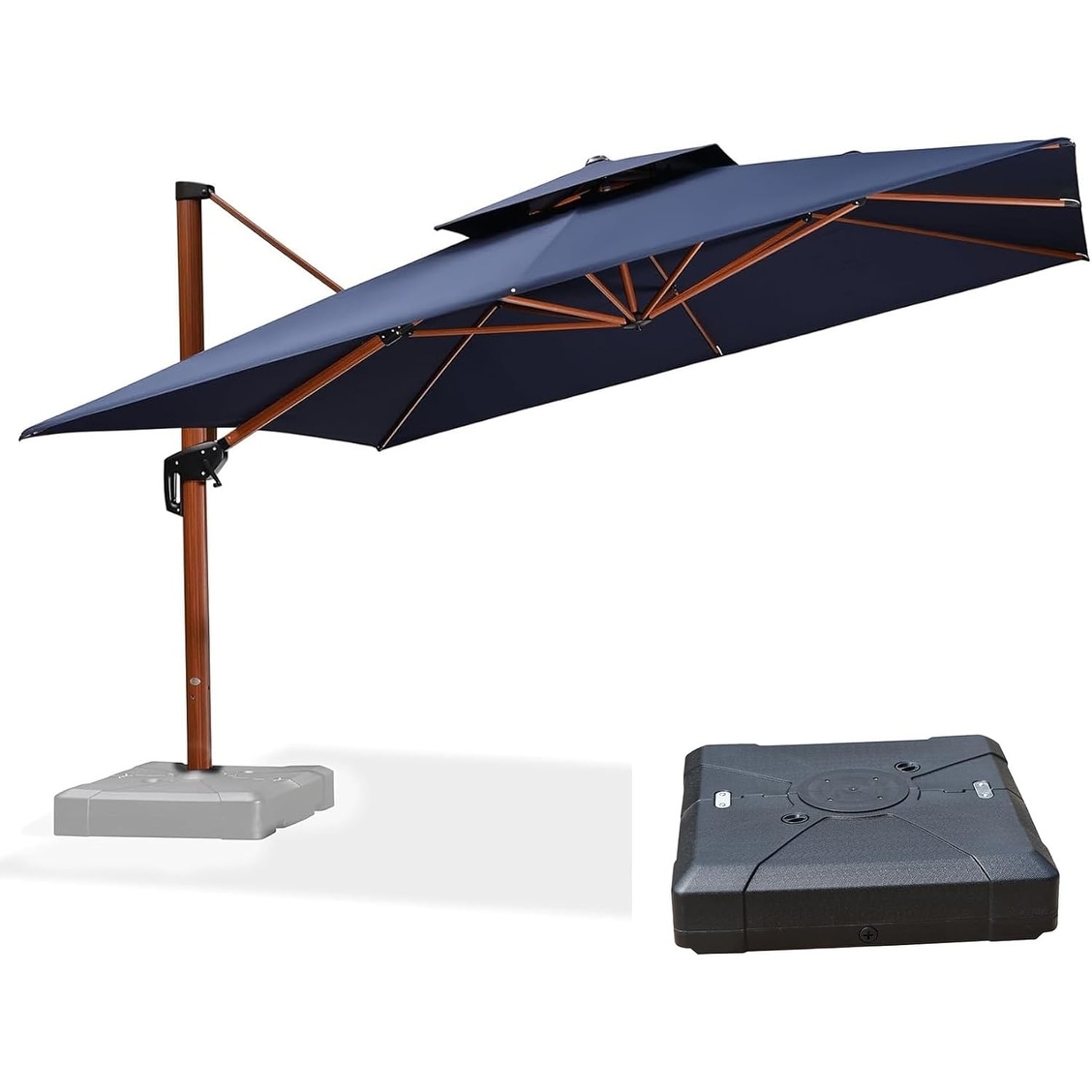 PURPLE LEAF 12ft Square Wood Pattern Patio Cantilever Umbrella with Base