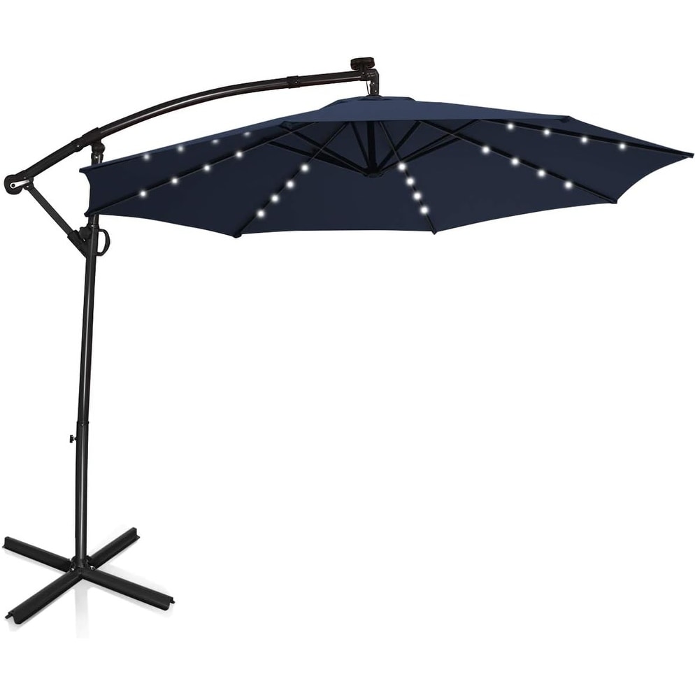 Autlaycil 10FT Cantilever Patio Umbrella with Solar Lights Included Base 360 Rotation Large Offset Hanging Outdoor Shade