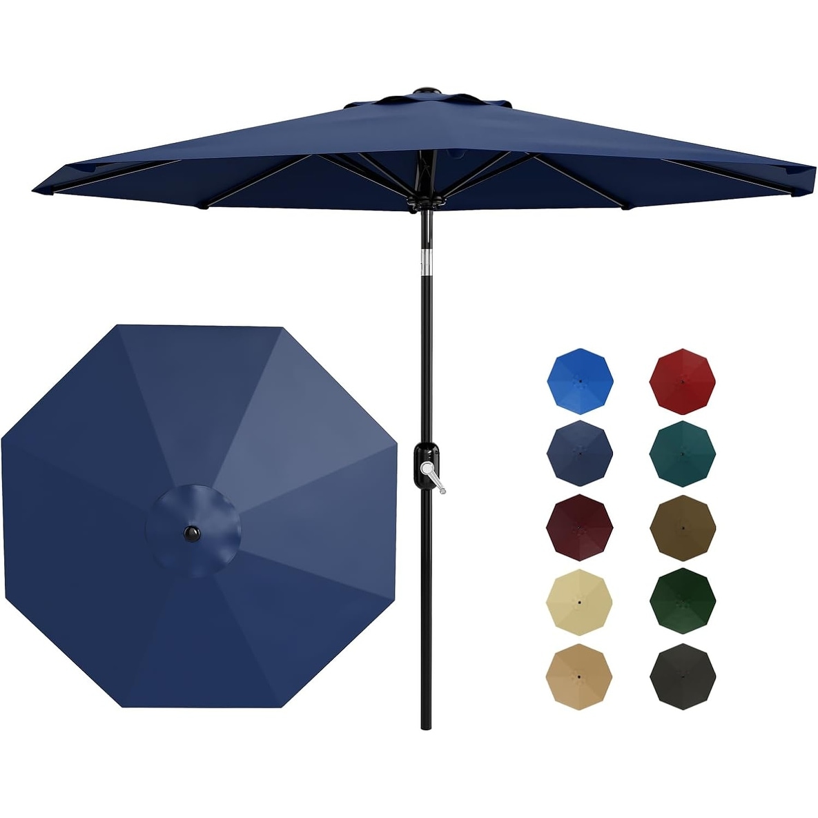 9 ft Outdoor Patio Umbrella with UV Protection, Crank Lift, and Push Button Tilt, Navy Blue