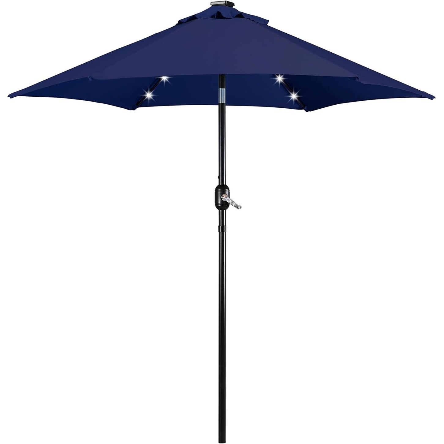 7.5FT Solar Patio Umbrella with LED Lights, UV Protection, and Tilt & Crank Lift for Outdoor Use