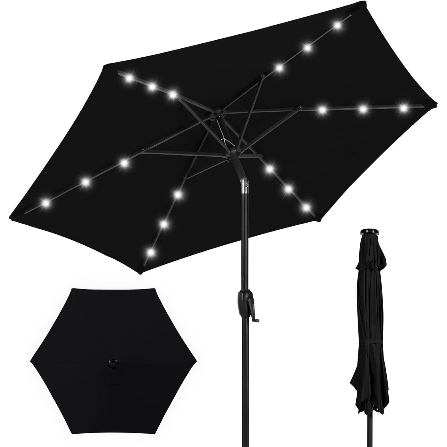 7.5ft Outdoor Solar Patio Umbrella with LED Lights, Tilt, and Crank for Deck or Pool