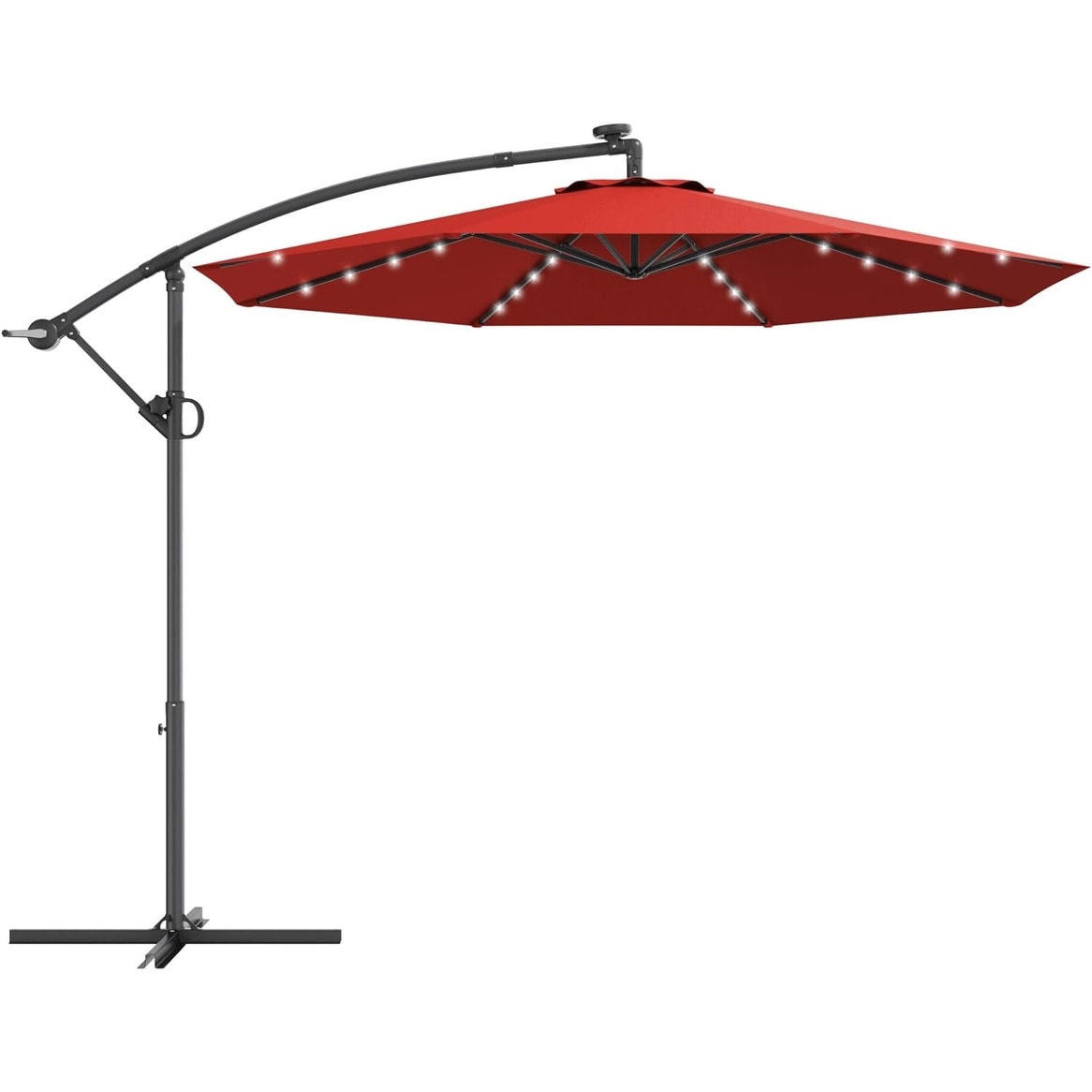 10ft Solar LED Cantilever Umbrella, 360 Rotation, Tilt, Cross Base