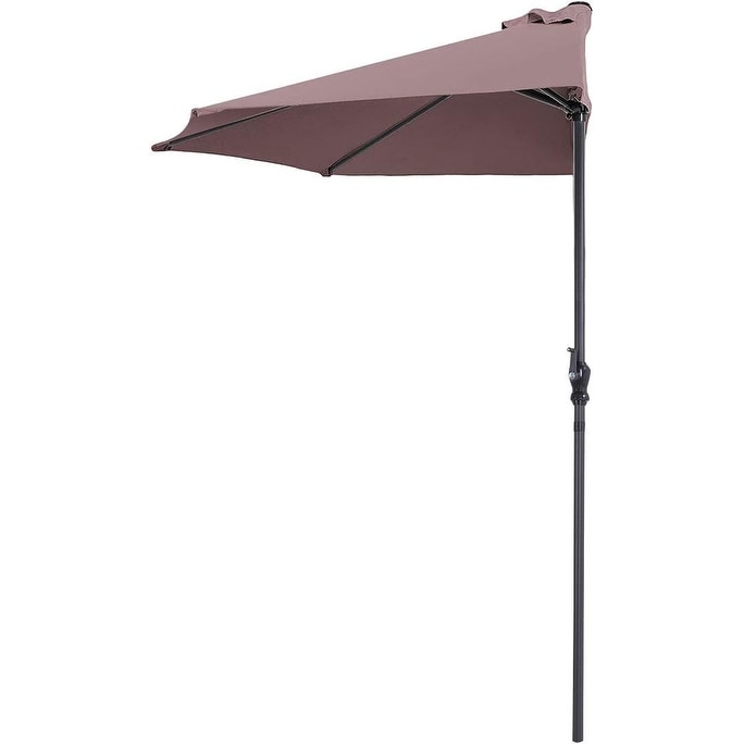 9 ft Half Round Outdoor Patio Umbrella with Crank, 5 Ribs, Tan - Perfect for Café, Deck, Balcony
