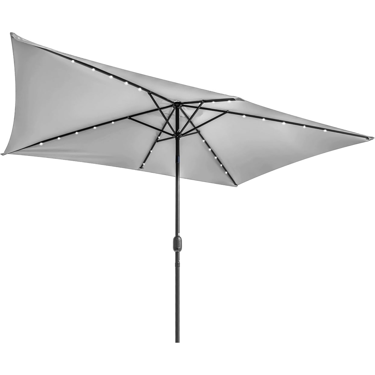 10' x 6.5' Solar Powered LED Patio Umbrella with 26 Lights, Black Steel Frame, Gray Polyester Fabric