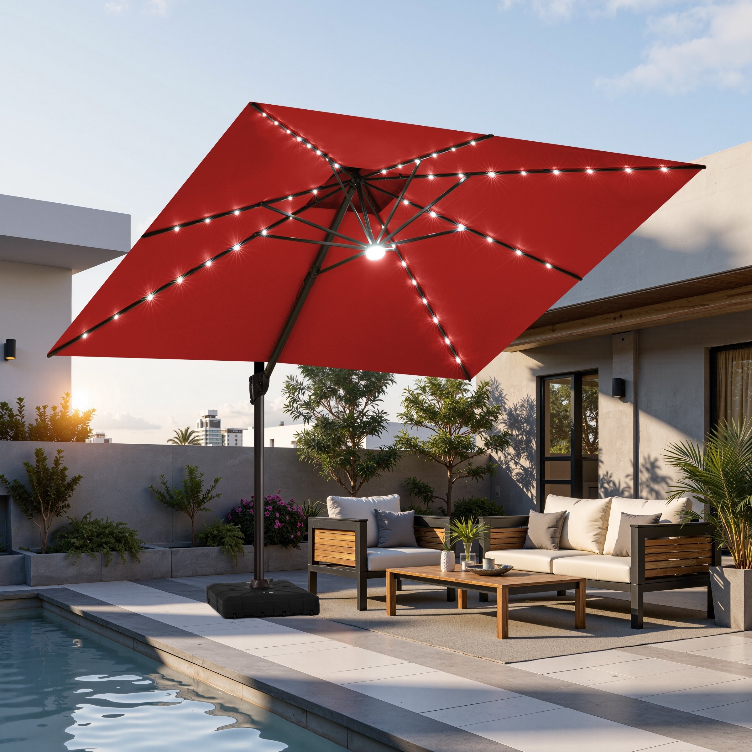 9 x11 FT Double Top LED Lighted Cantilever Patio Umbrella Rectangle with Base