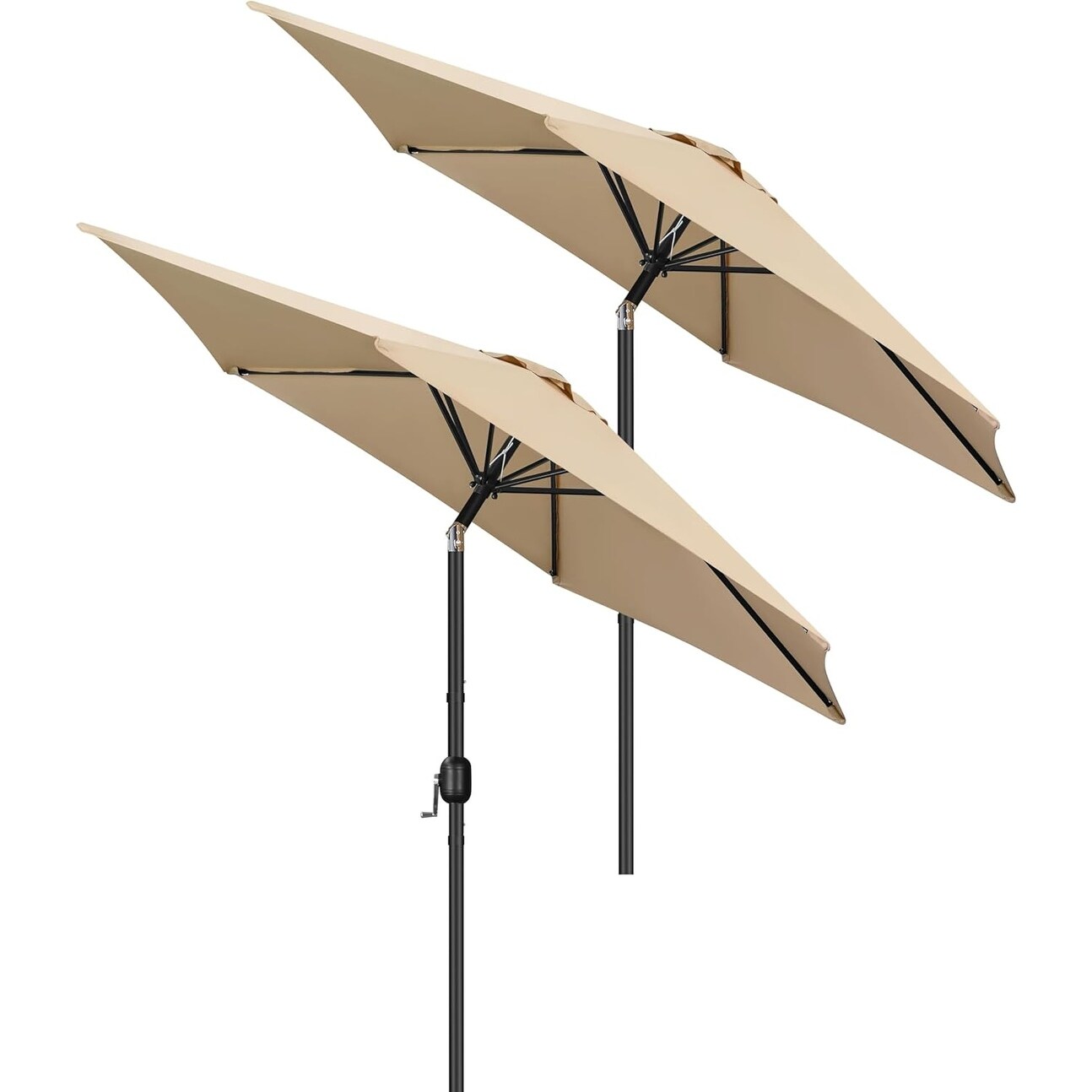 2PCS 9FT Outdoor Patio Umbrella with Adjustable Canopy, Crank Handle, and Sewn-in Strap for Garden, Deck, Pool, or Beach