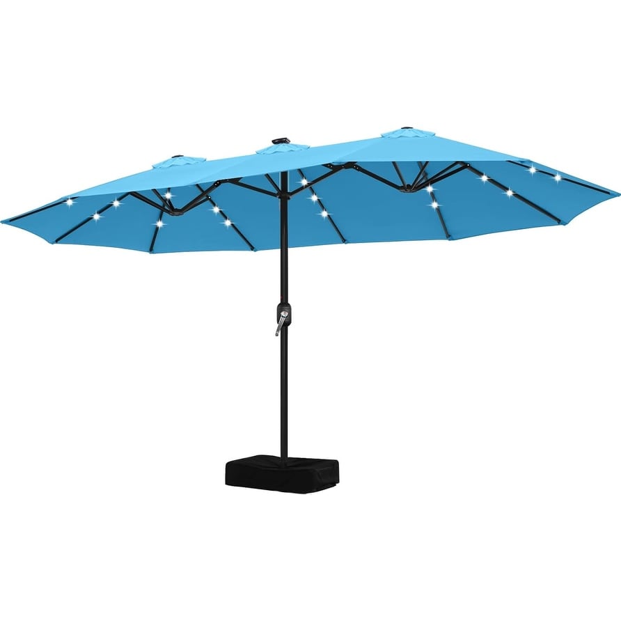 15ft Patio Umbrella Double-Sided Outdoor Extra Large Crank Lift Umbrella with Solar Led Lights and Base Included
