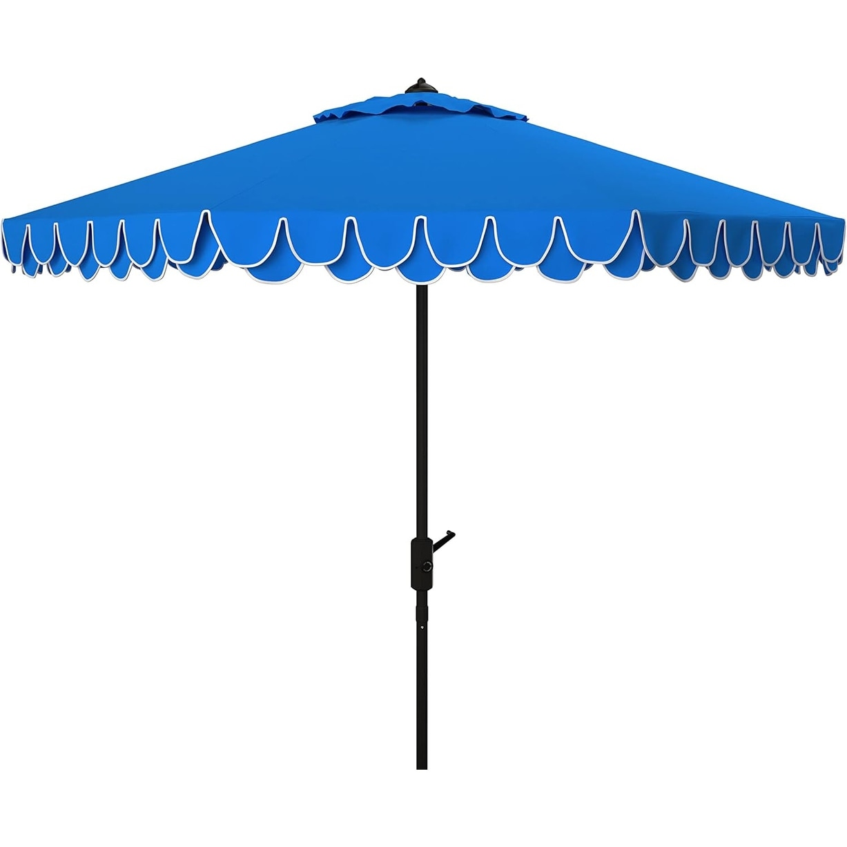 9ft Outdoor Patio Umbrella with Auto Crank Tilt, UV Resistant, Pacific Blue & White Trim
