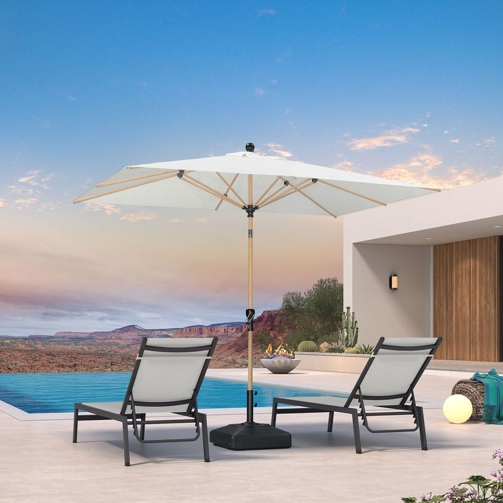 6' x 9' Aluminum Patio Umbrella with Push Button Tilt, Crank Handle, and UPF 50+ Fabric for Outdoor Use