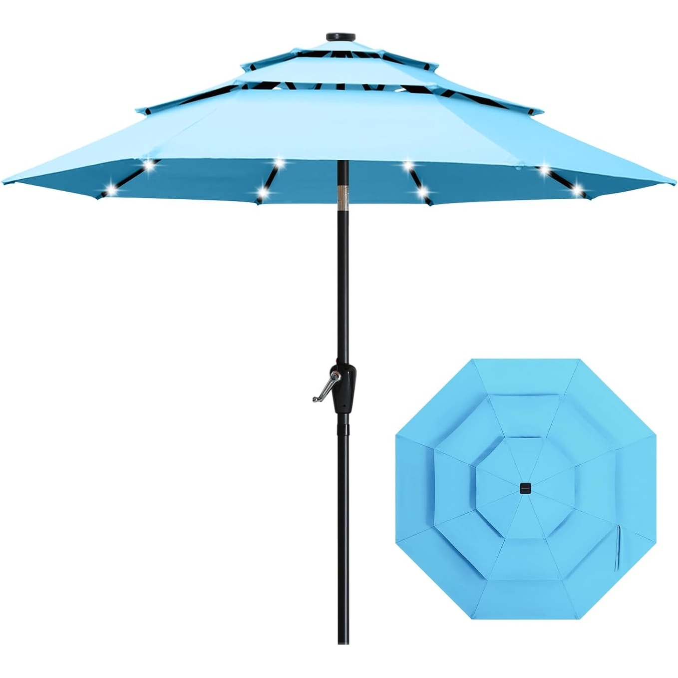 3-Tier 9FT Solar Patio Umbrella with 32 LED Lights, Windproof Outdoor Umbrella for Deck, Pool, Garden