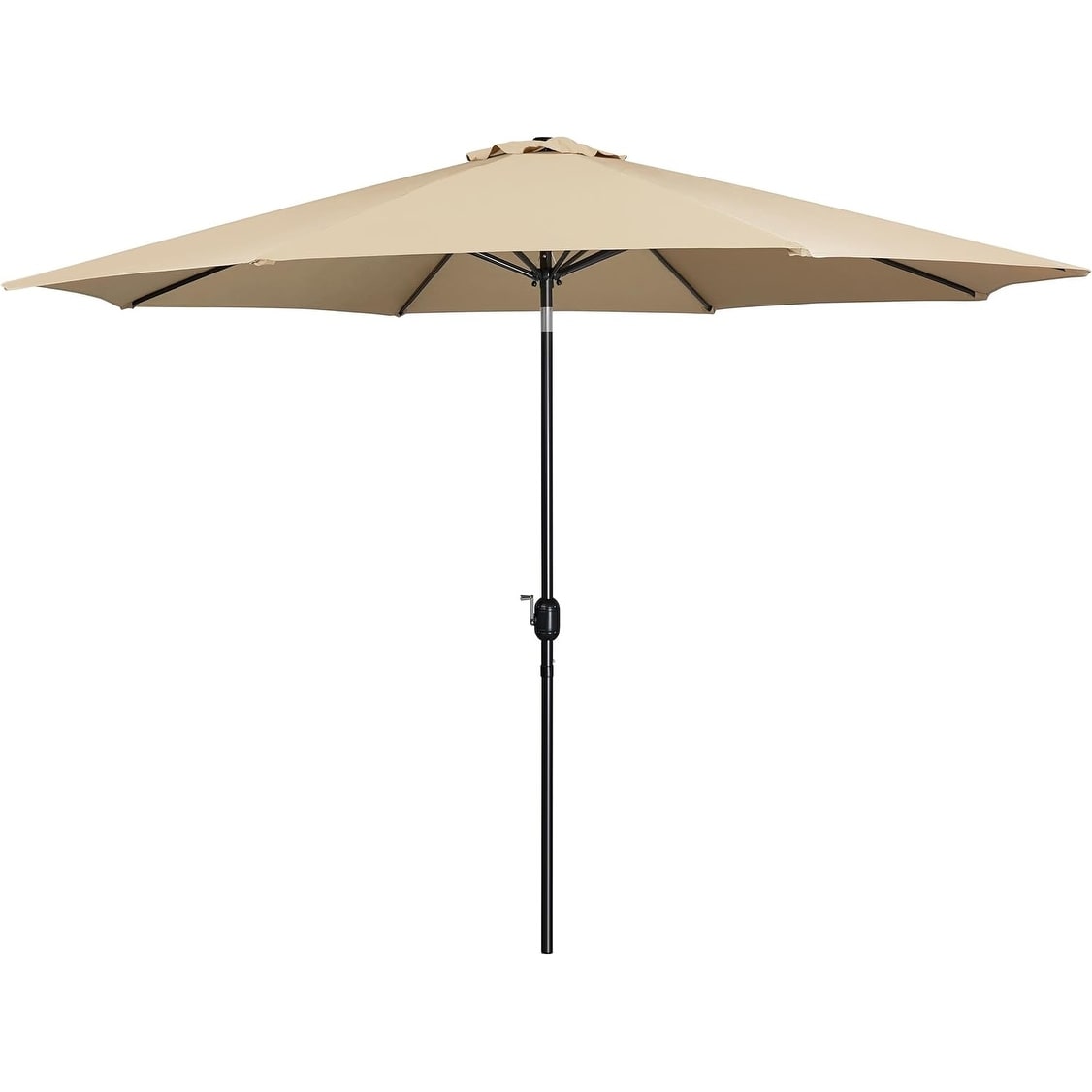 11FT Outdoor Patio Umbrella with Push Button Tilt & Crank for Garden, Lawn, Deck, Pool, Beach, 8 Ribs, Tan