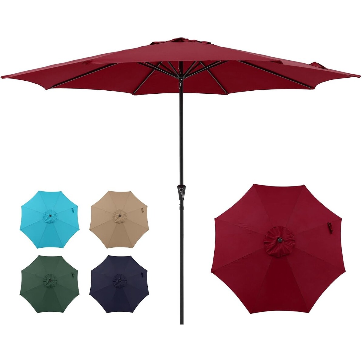 11' Patio Umbrella, Outdoor Table Market Umbrella with Steel Ribs and Crank, Dark Red