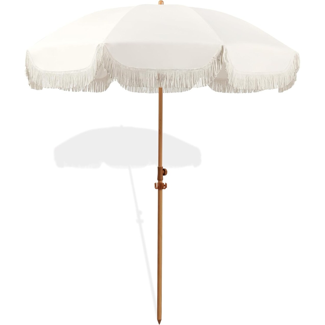 6.5ft Outdoor Patio Umbrella with Tassels, Tilt Aluminum Pole, UV 50+ Protection, Waterproof, Portable with Carry Bag