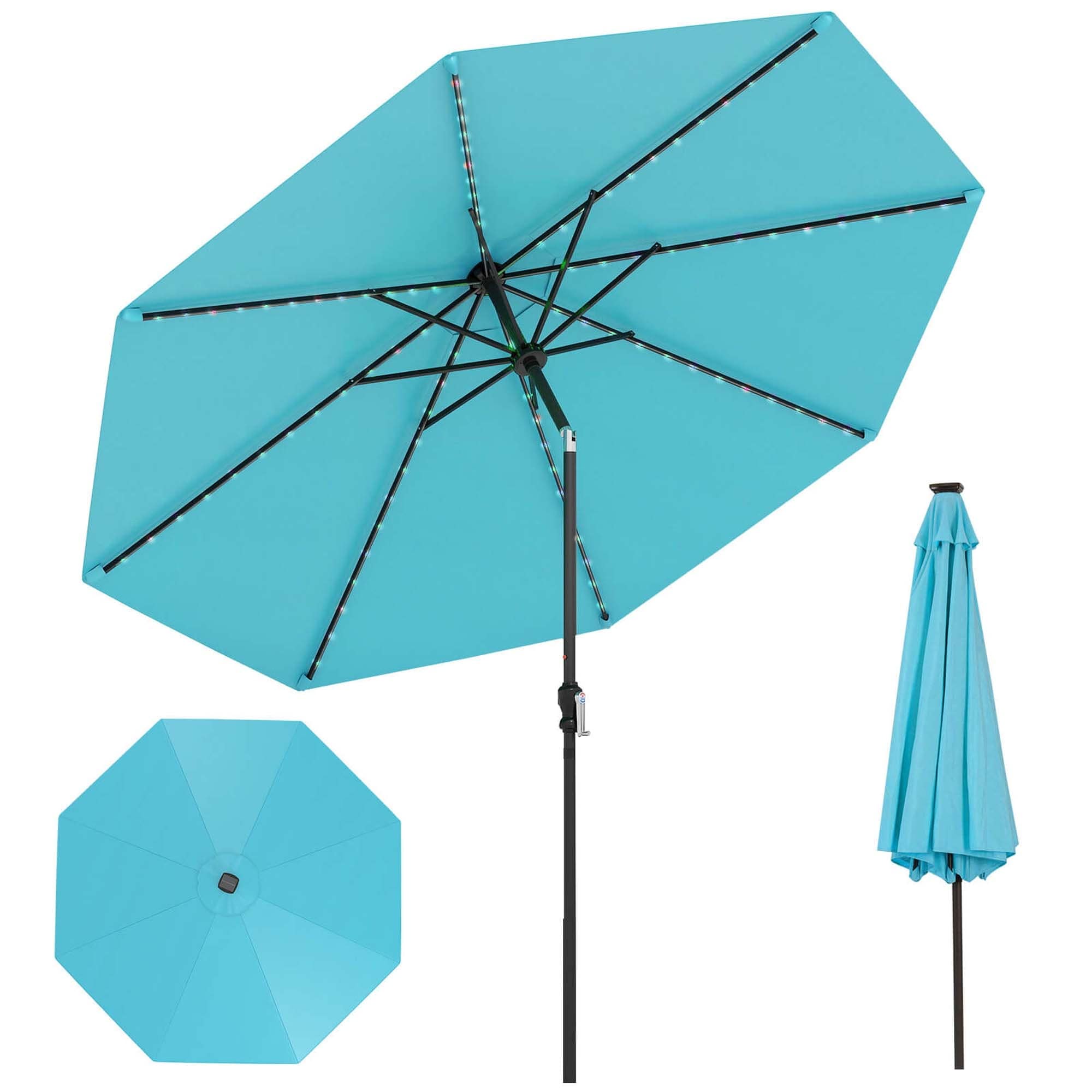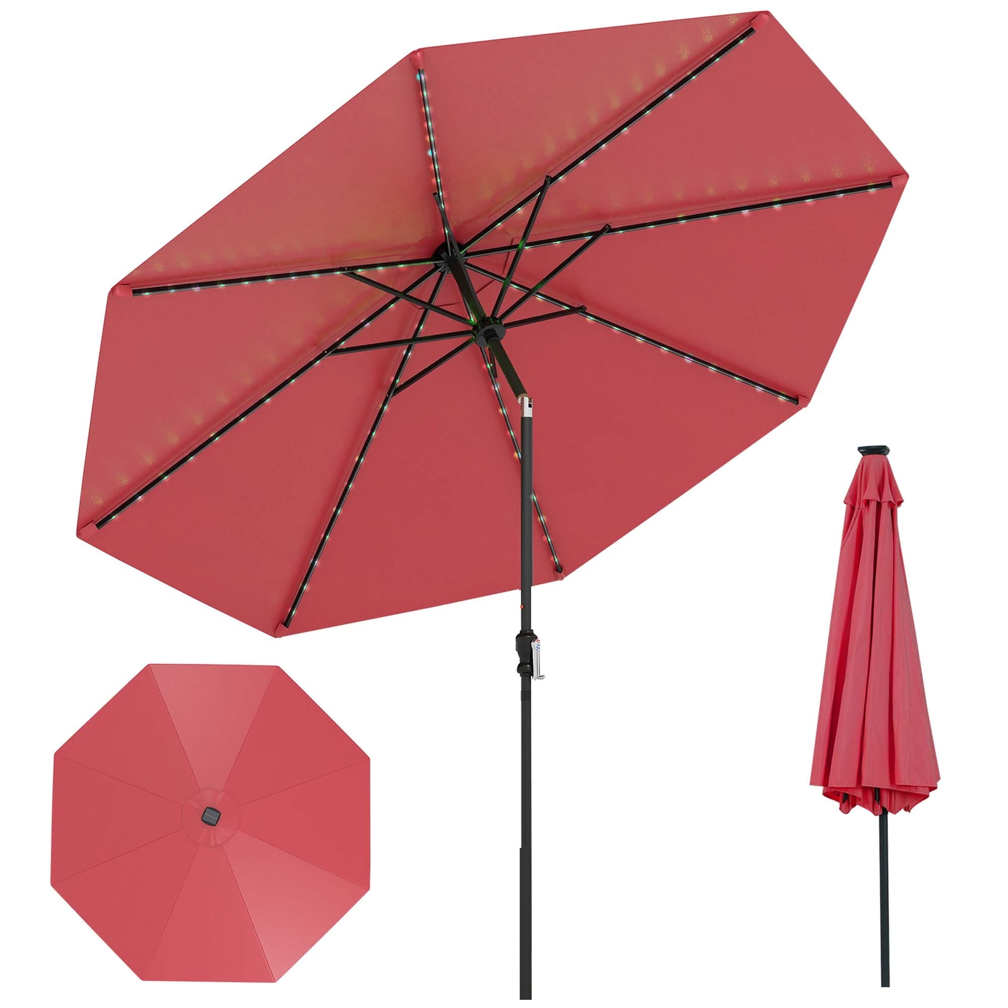 10 FT Solar Patio Umbrella Outdoor Market Table Umbrella w/ LED Lights