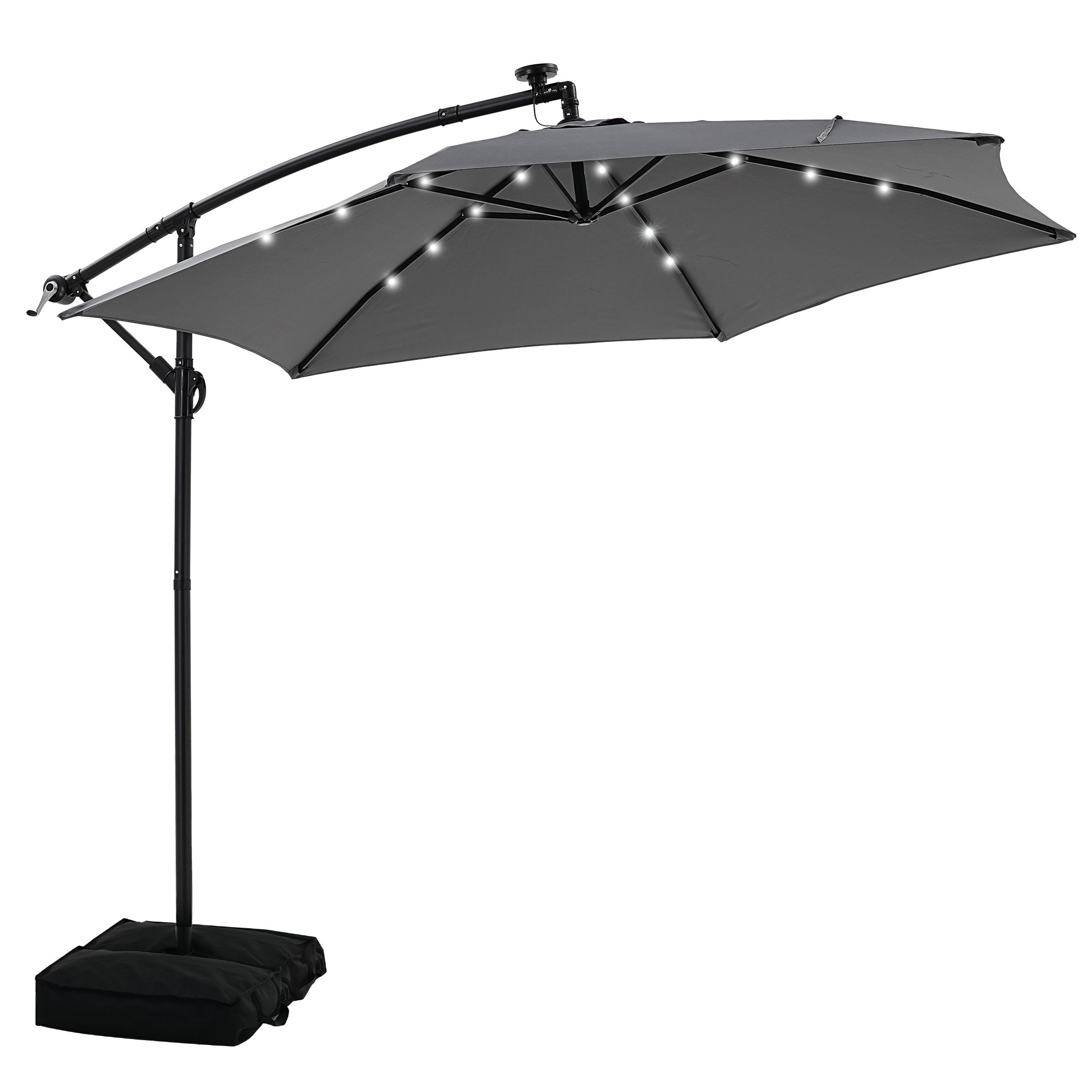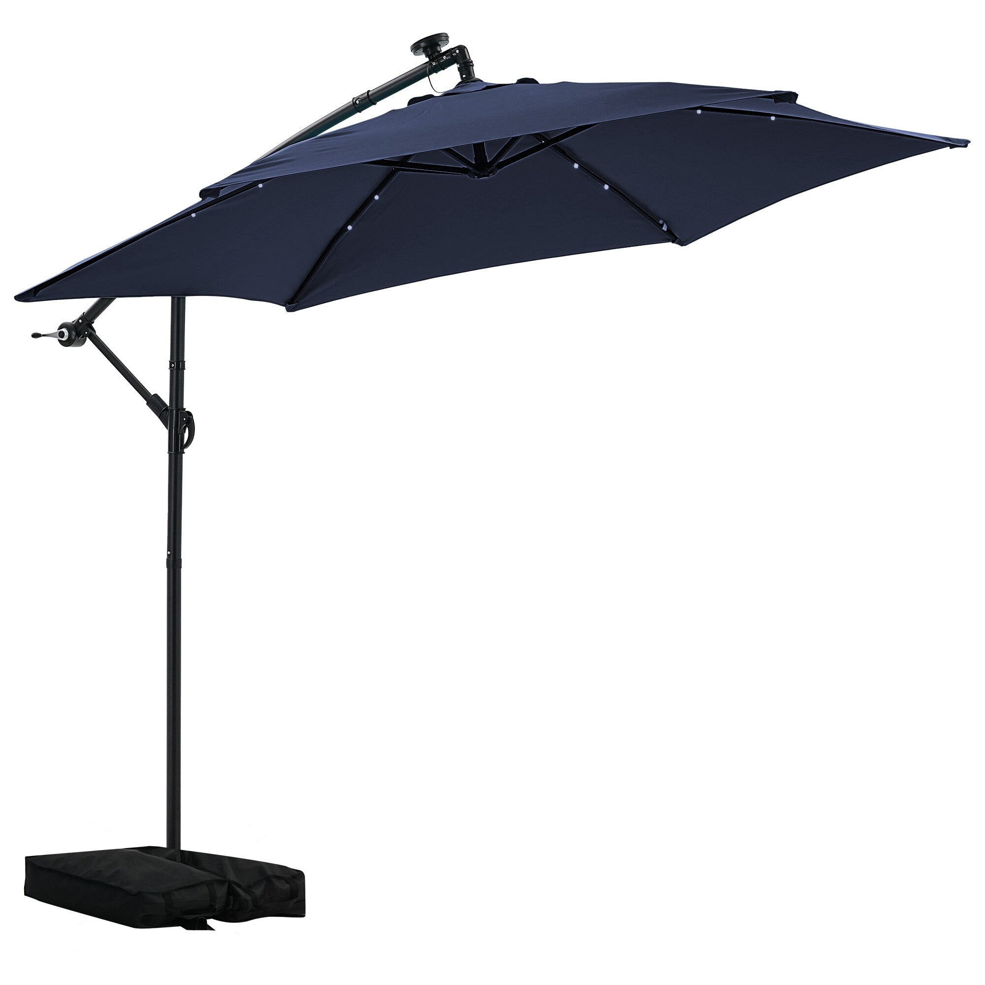 Autlaycil 10ft Offset Hanging Market Patio Umbrella With Base&Solar Lights