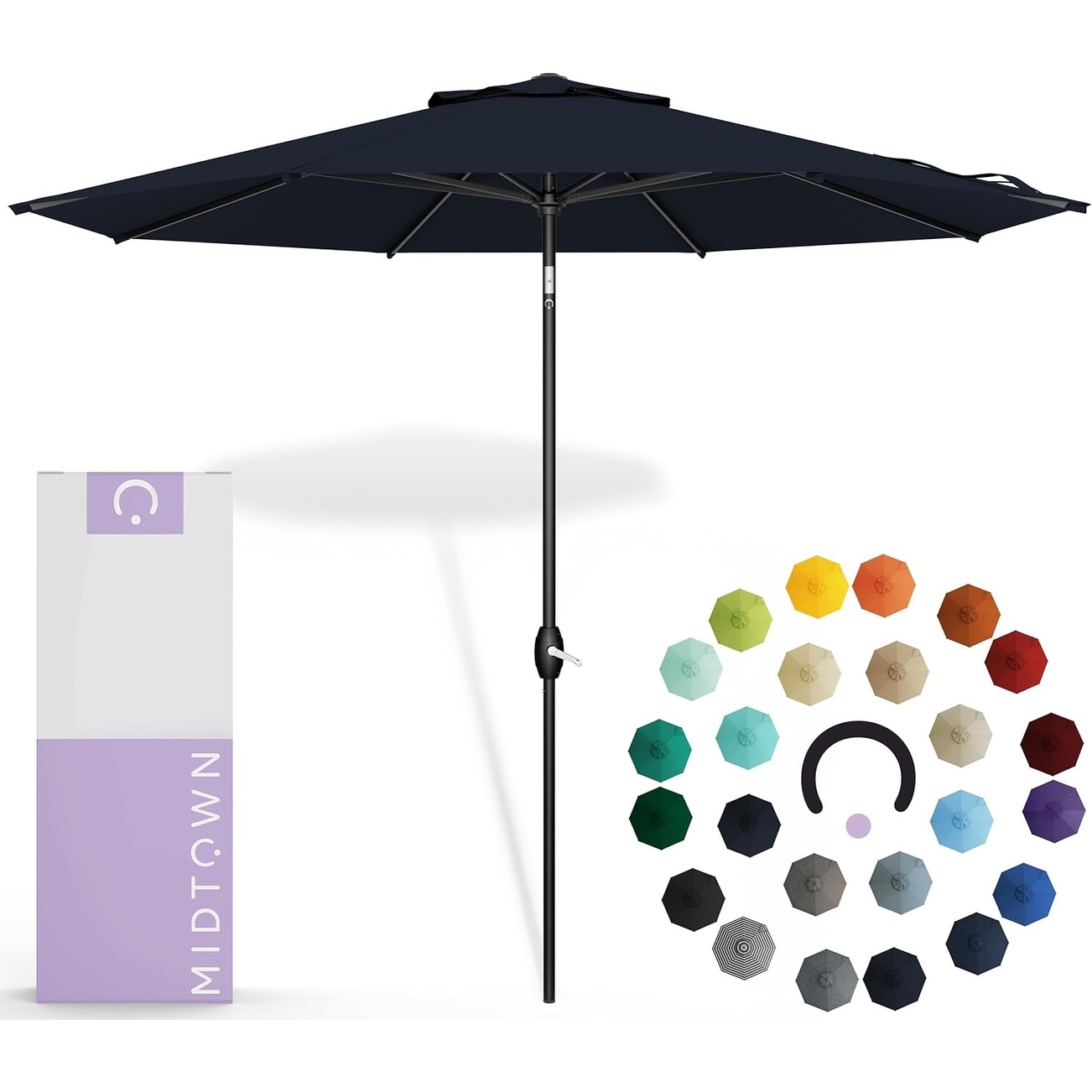 8 Feet Outdoor Patio Umbrella with Auto-Tilt Aluminum Frame and Sunbrella Navy Acrylic Fabric