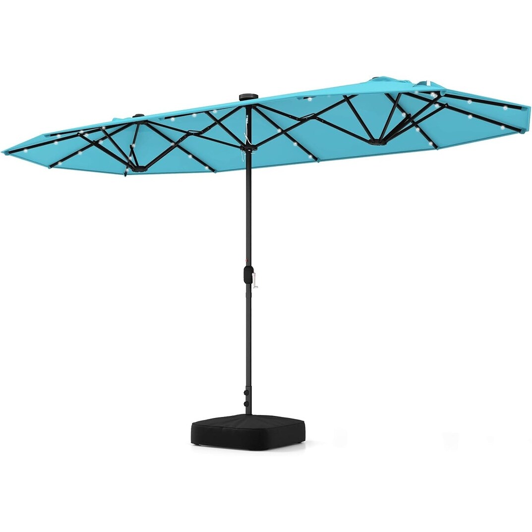 13FT Double-Sided Solar Patio Umbrella with 36 LED Lights, Vented Top, Crank Handle, 12 Ribs, Weighted Base for Outdoor Use