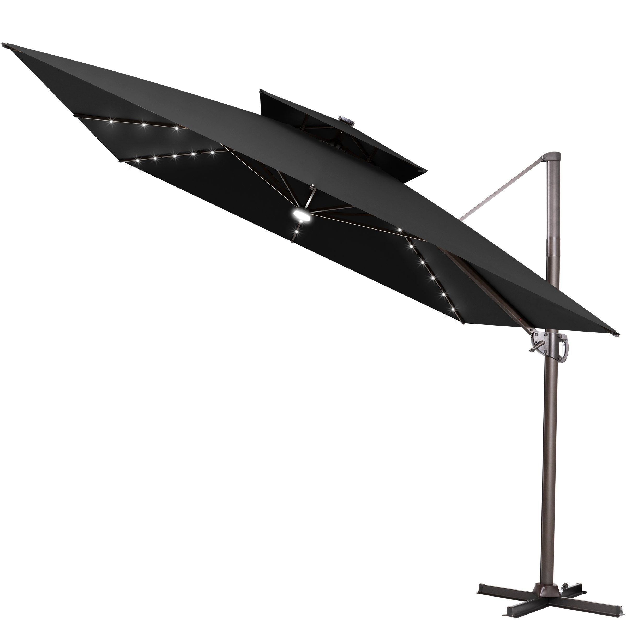 11 FT Outdoor Solar Powered LED Patio Cantilever Umbrella Double Top Square Umbrella