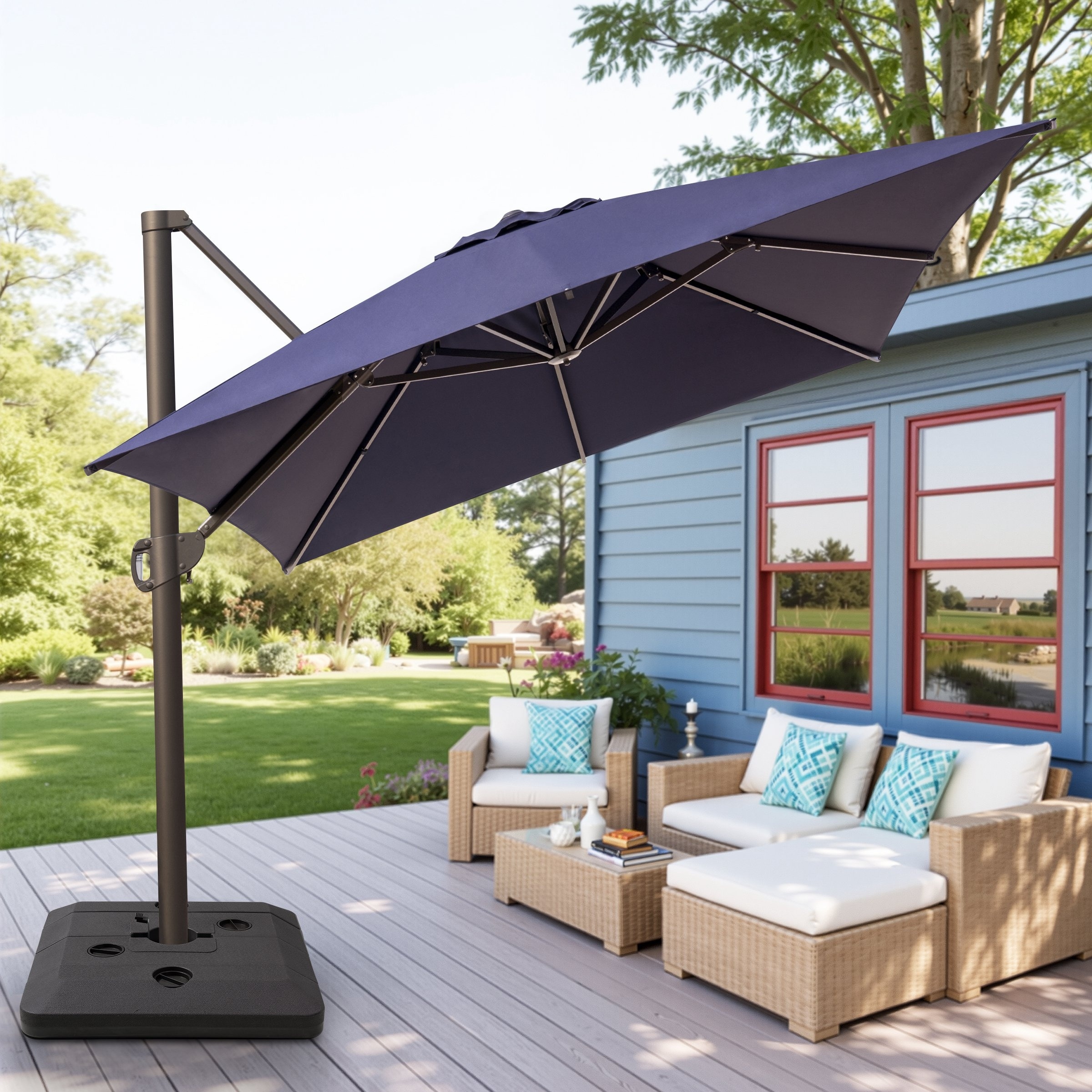 PURPLE LEAF Luxurious Design Square Patio Cantilever Umbrellas with Base UV50+ Fade Resistant