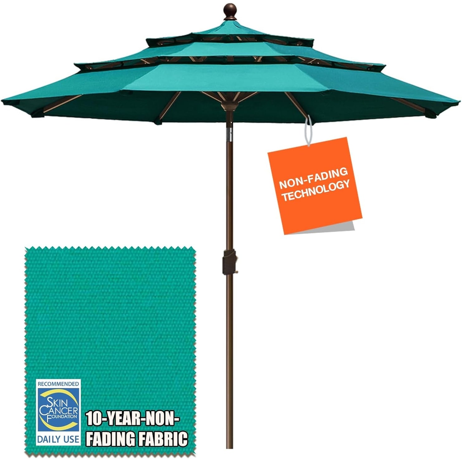 10-Year Non-Fading 9Ft 3-Tier Market Umbrella with Ventilation, Teal