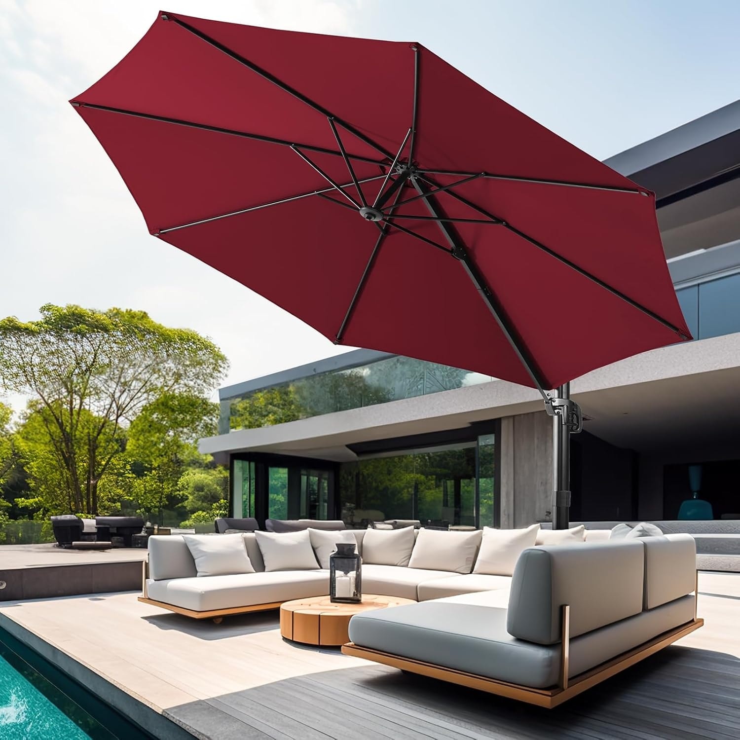 10 FT Cantilever Patio Umbrella with 360° Rotation, 6-Level Tilt, and Heavy Duty Cross Base, Burgundy