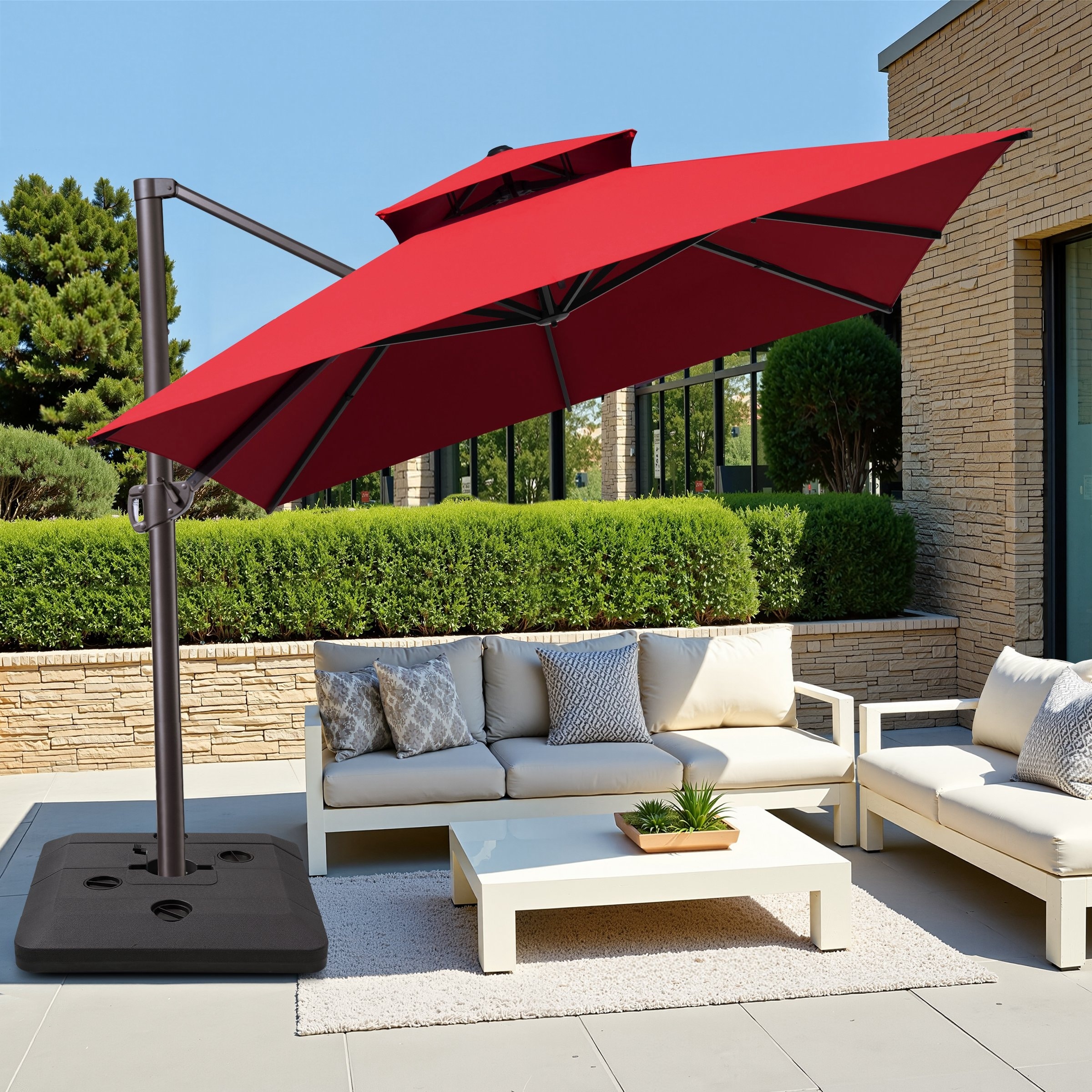 10 x 13 ft Double Top Aluminum Rotating Patio Offset Cantilever Umbrella with Base