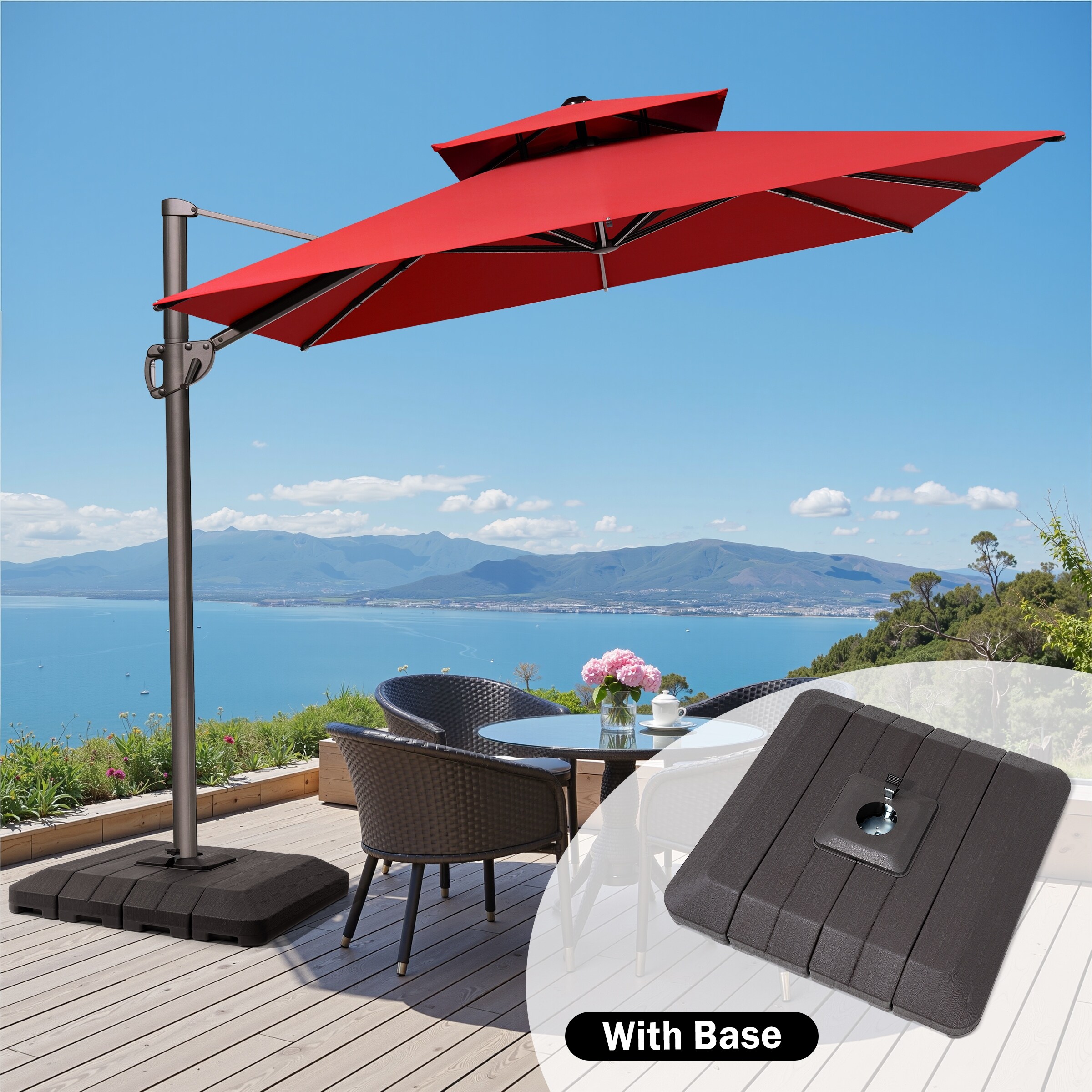 9 x 12 ft Double Top Patio Cantilever Umbrella with Base, 360-degree Rotation