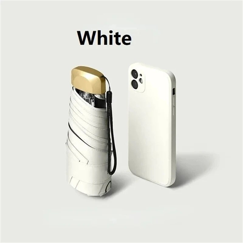 Mini Sun Umbrella Pocket Rain Umbrella Vinyl Folding UV Ultraviolet Protection Sun Shade Pocket Parasol Capsule white